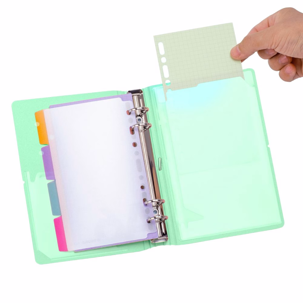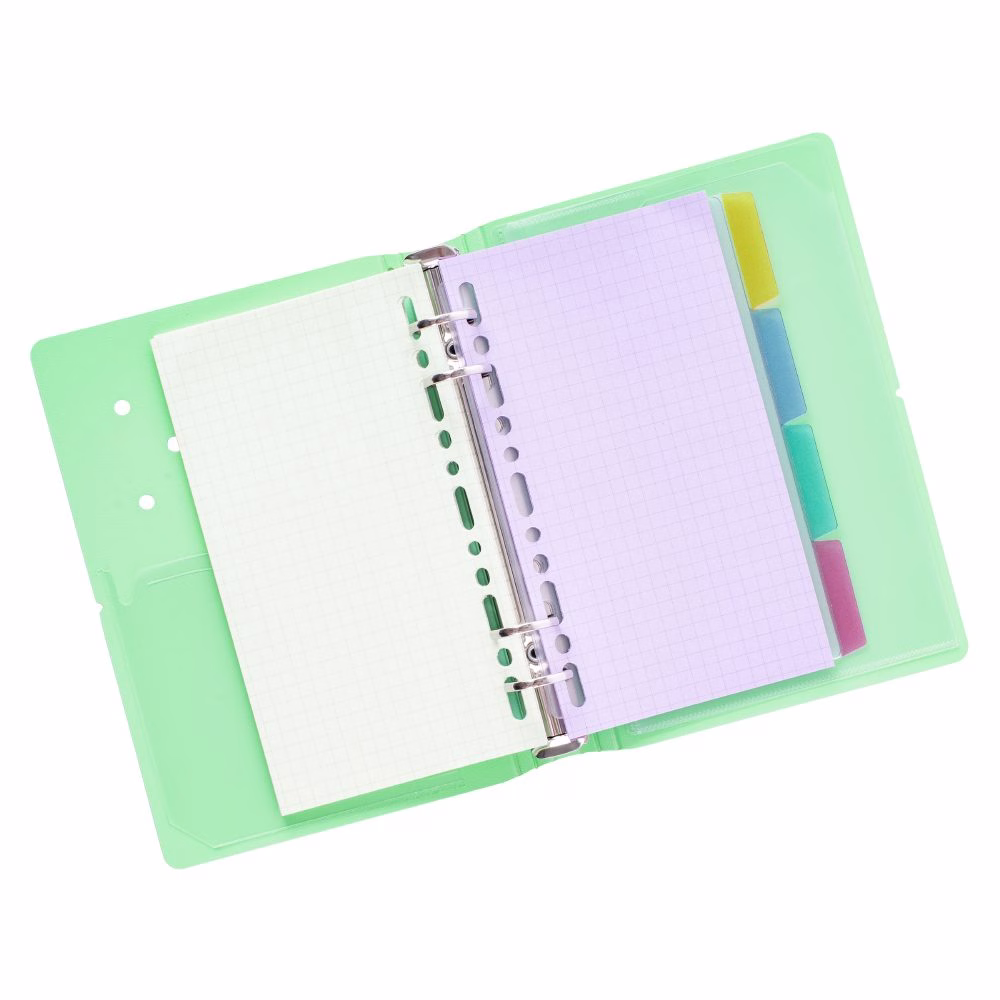 Incluye hojas de colores cuadriculadas, 4 separadores y sobre organizador