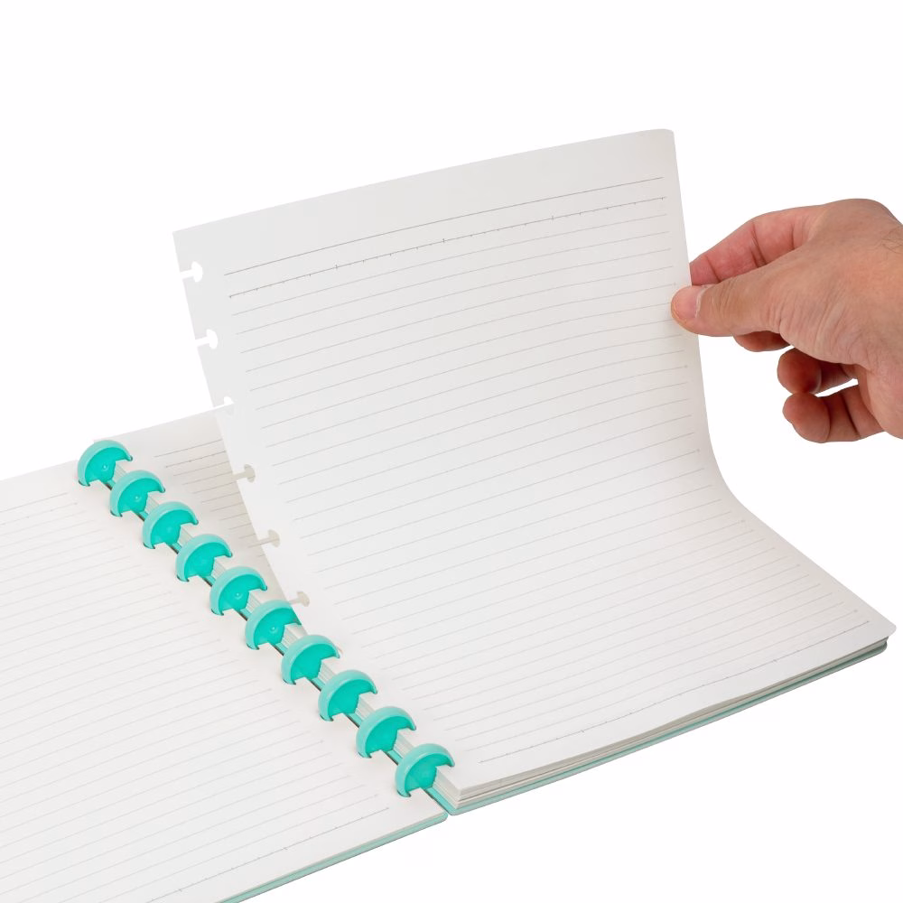 Encuadernación anillada que permite una apertura total y escritura sin límites