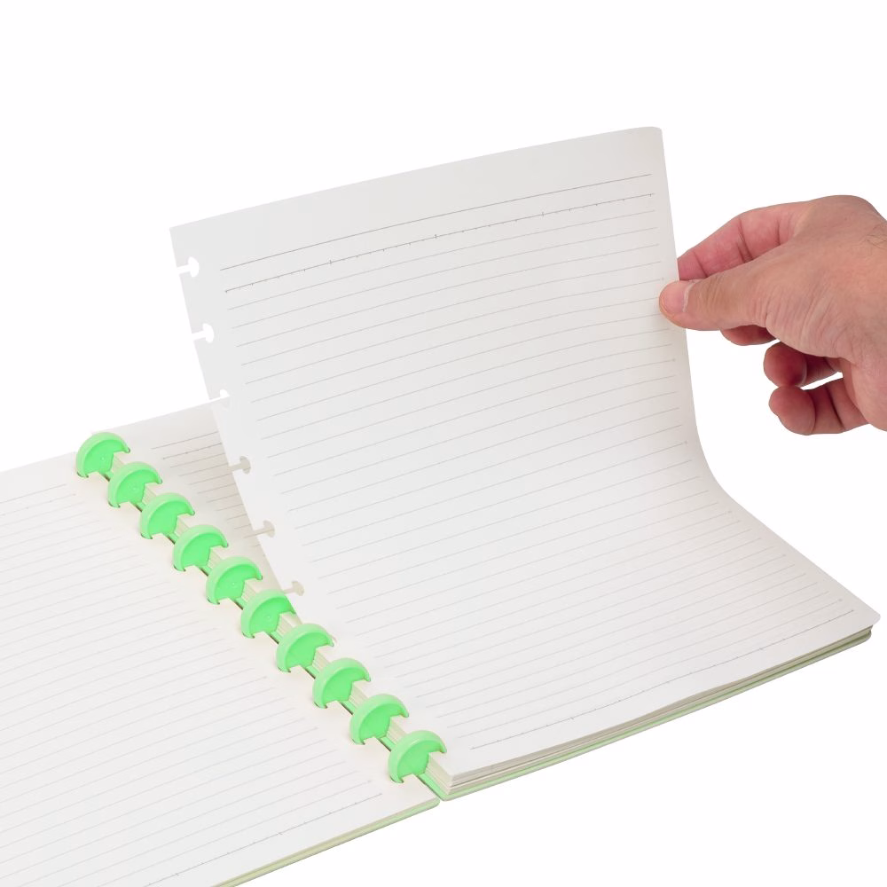 Encuadernación anillada que permite una apertura total y escritura sin límites