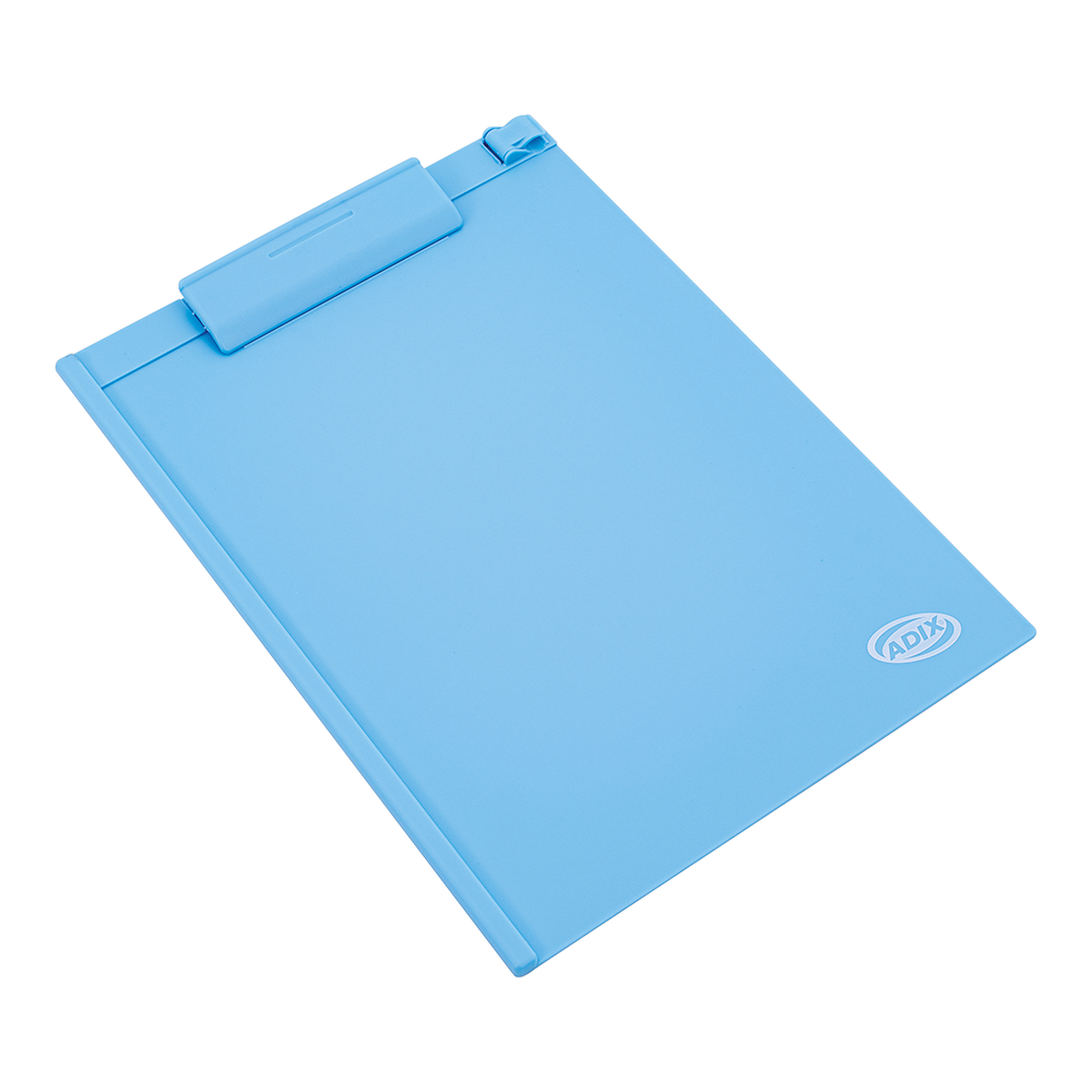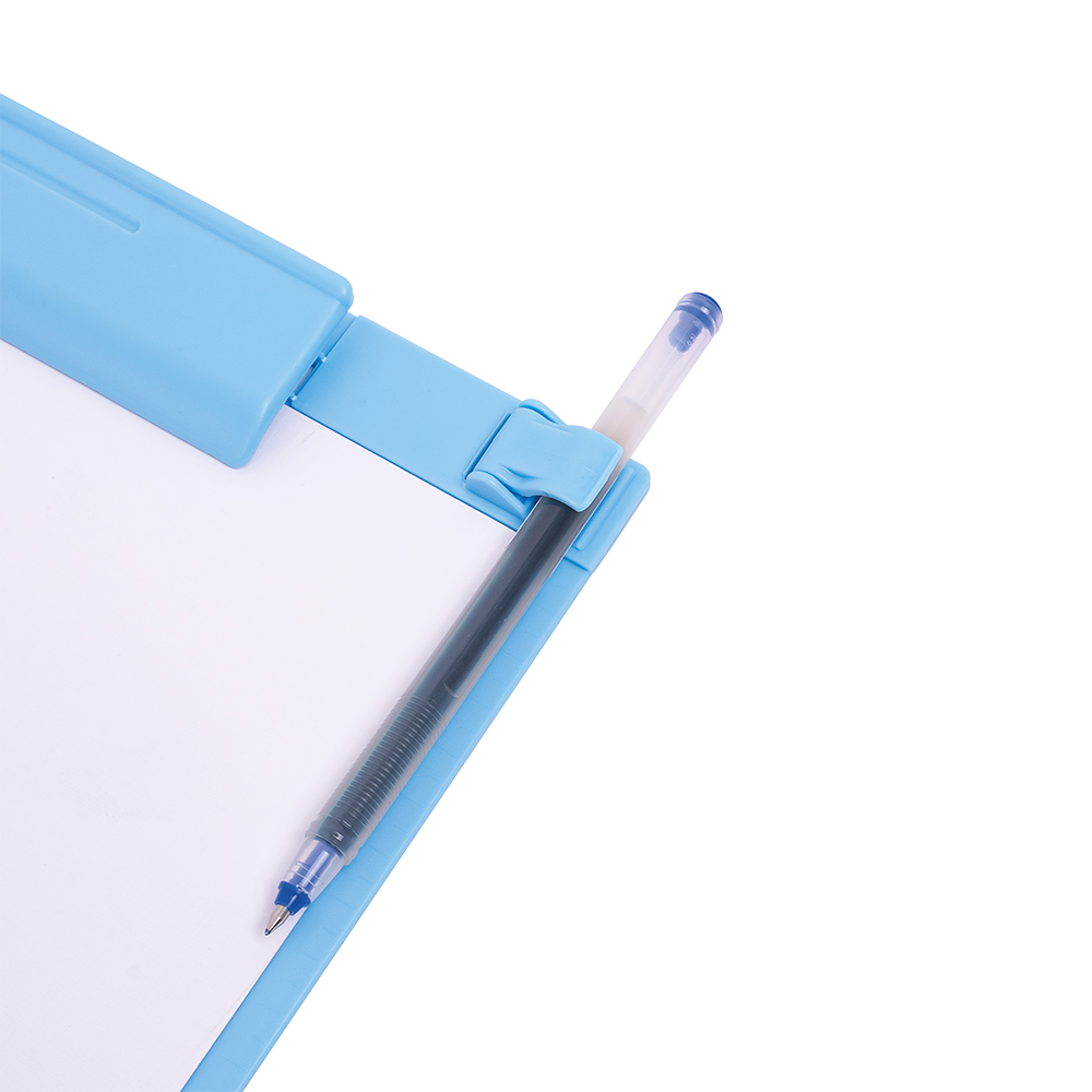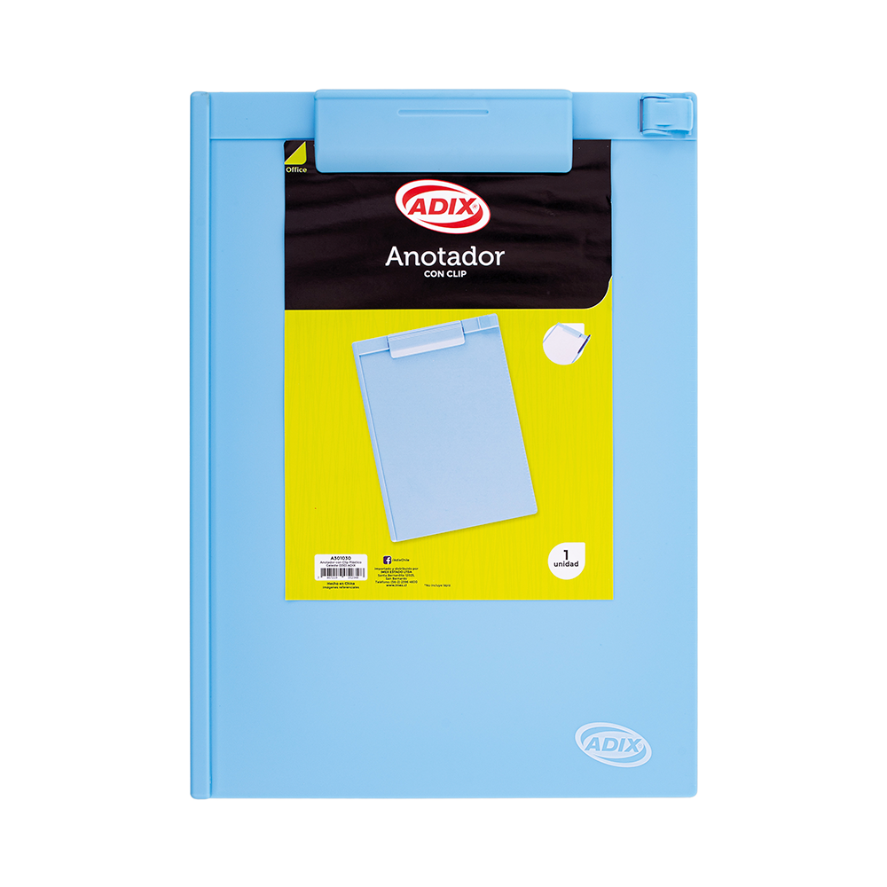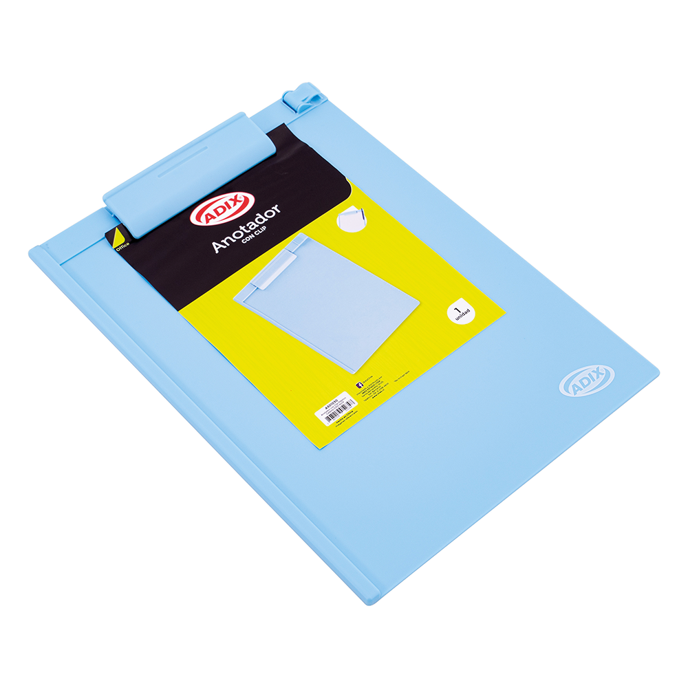 Anotador con clip plástico celeste.