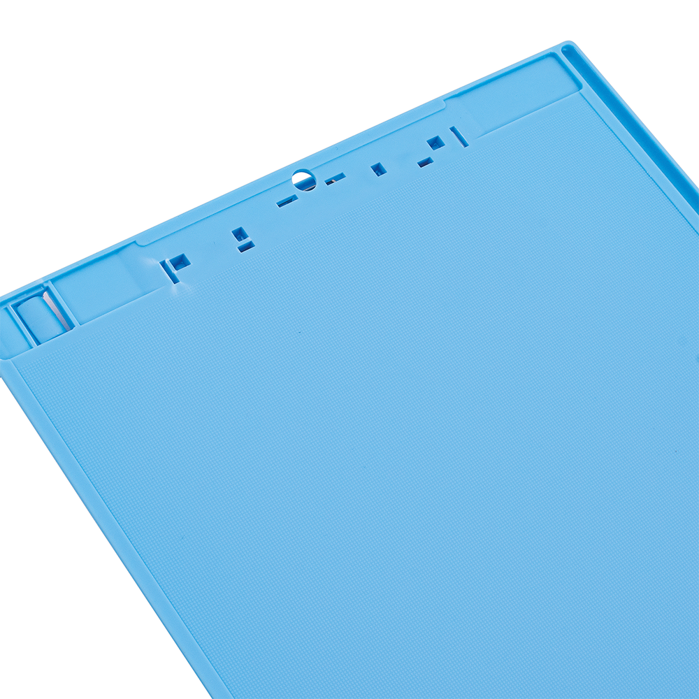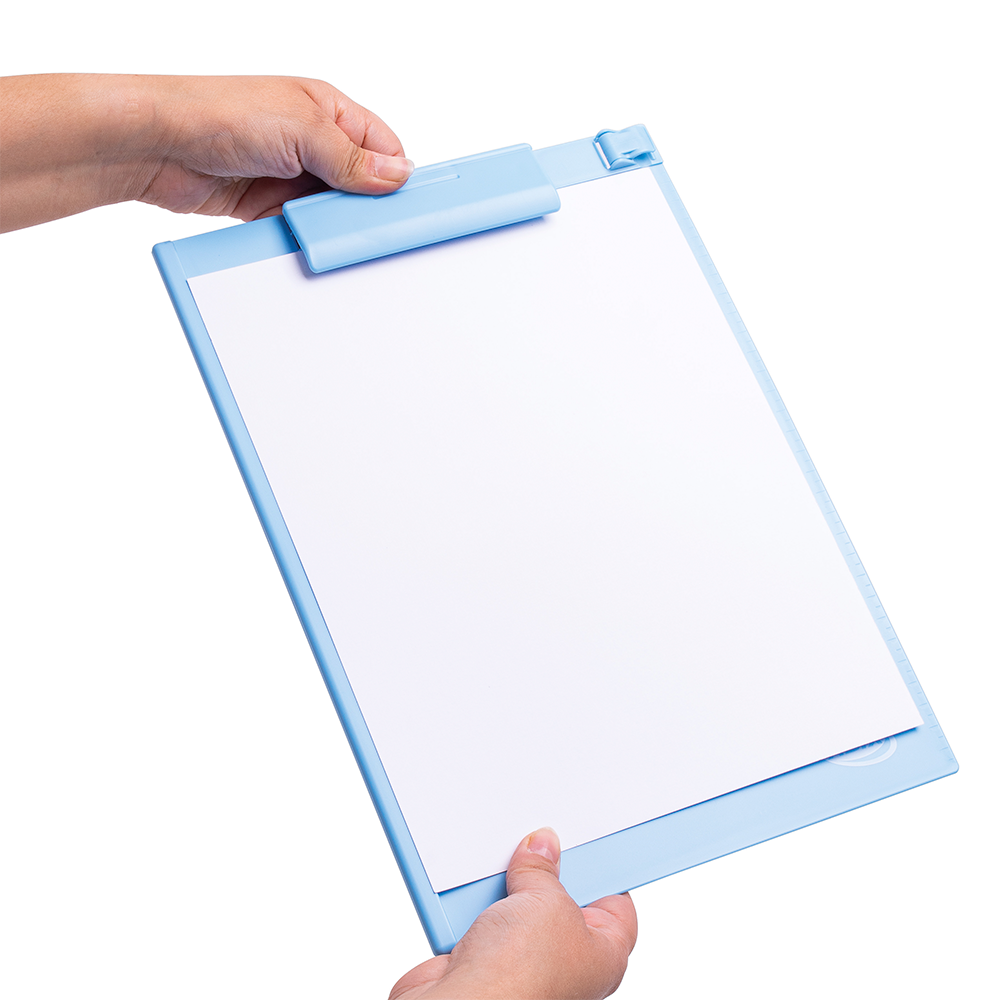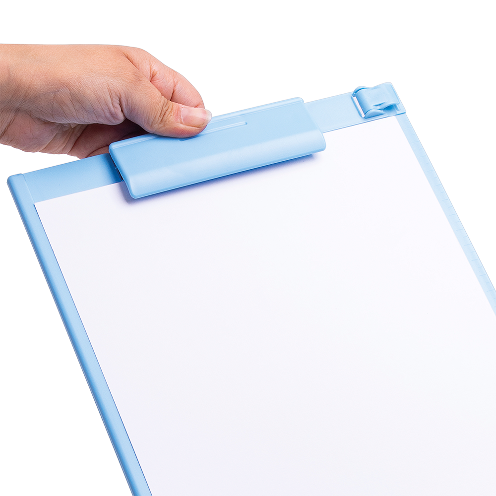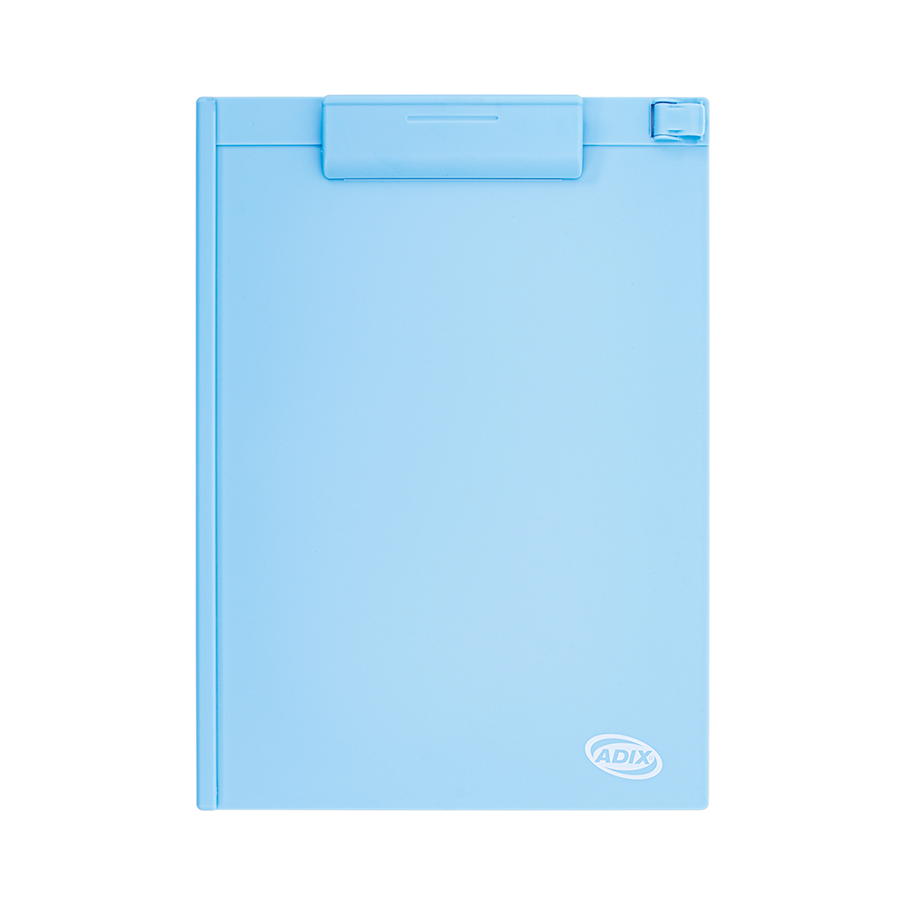 Anotador con clip plástico celeste.