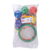 Contenido: 6 piezas de plástico de 16 cm. (argolla) y 77 cm. (cordel) c/u aprox.