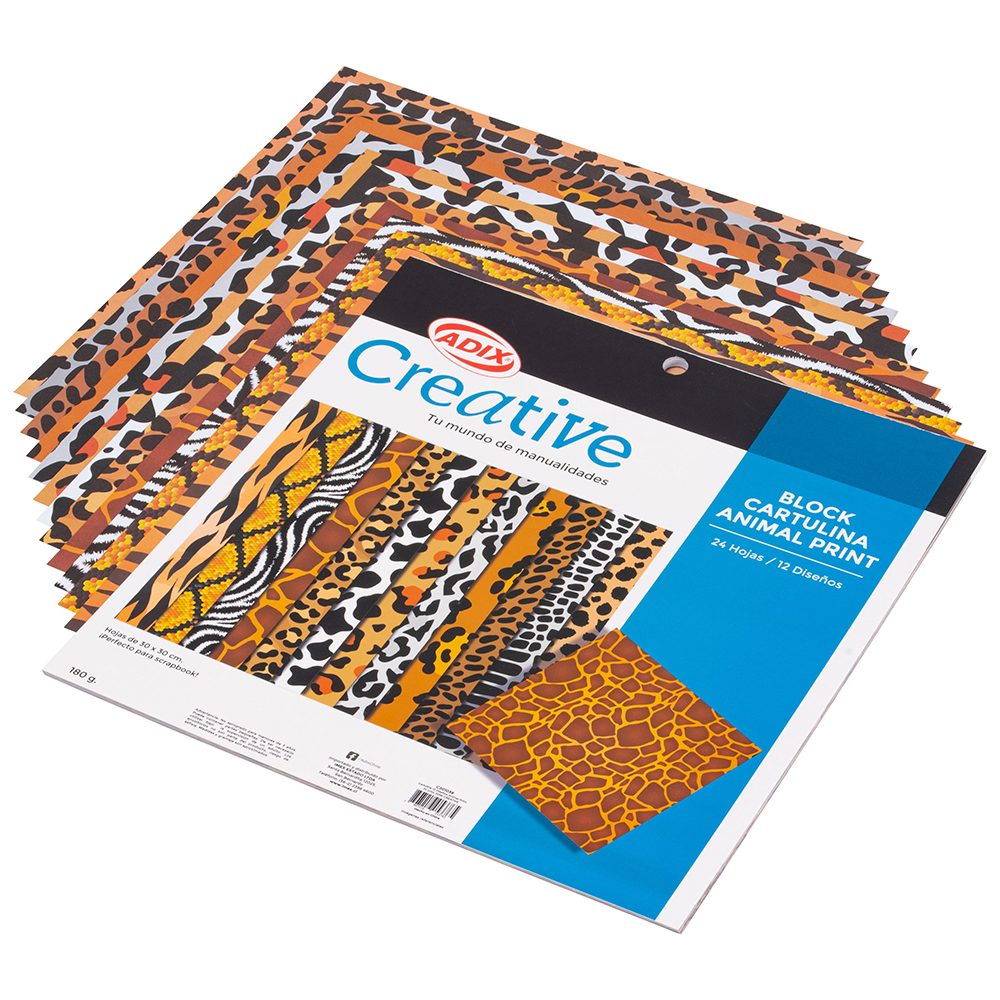 Block de cartulina incluye 12 un. diseño animal print y 24 un. aprox.
