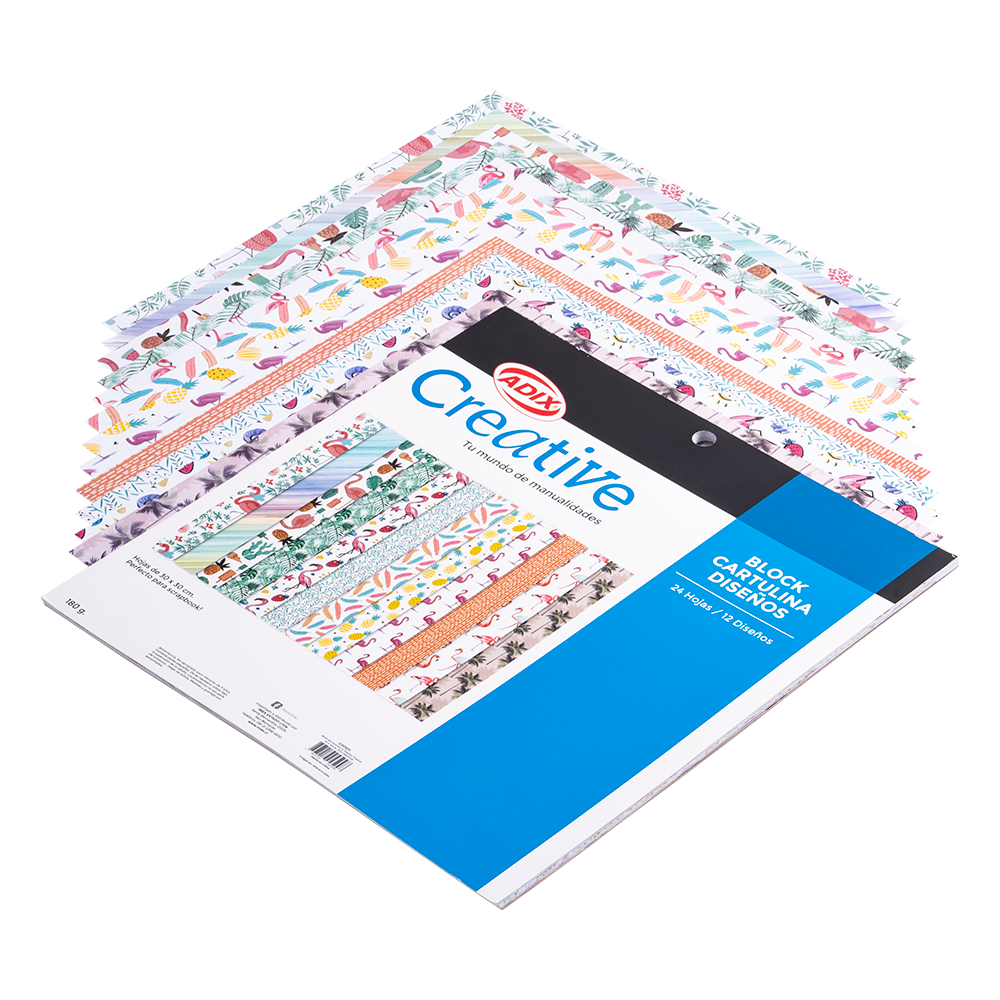 Block de cartulina incluye 12 diseño tropical y 24 un. aprox.