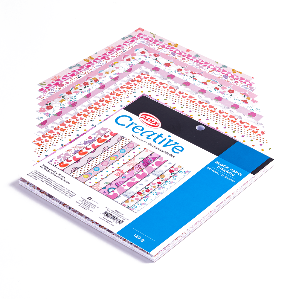 Block de papel cuenta con 12 diseños y 24 un. aprox.