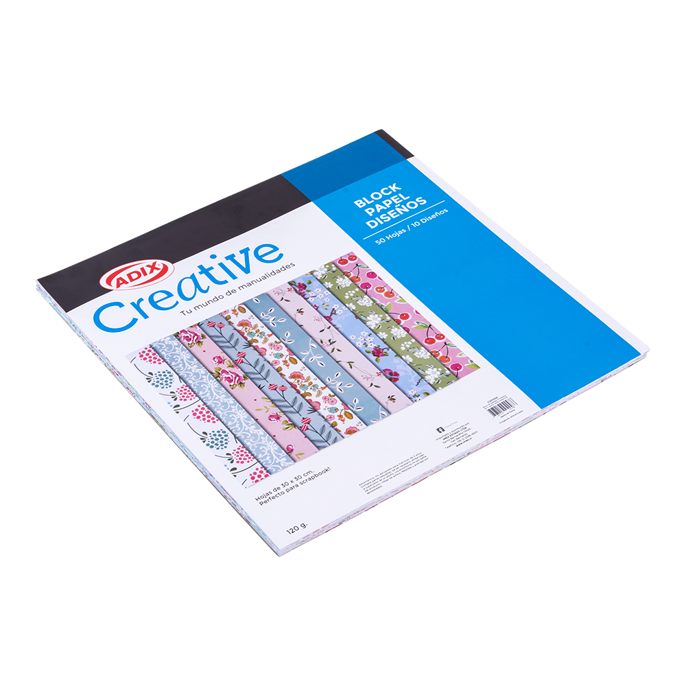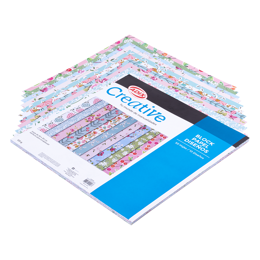 Block de papel impreso diseño flores incluye 10 diseños y 50 un. aprox.