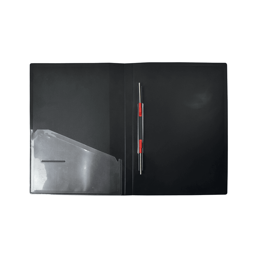 Carpeta A4 c/clip gusano y bolsillo interno.