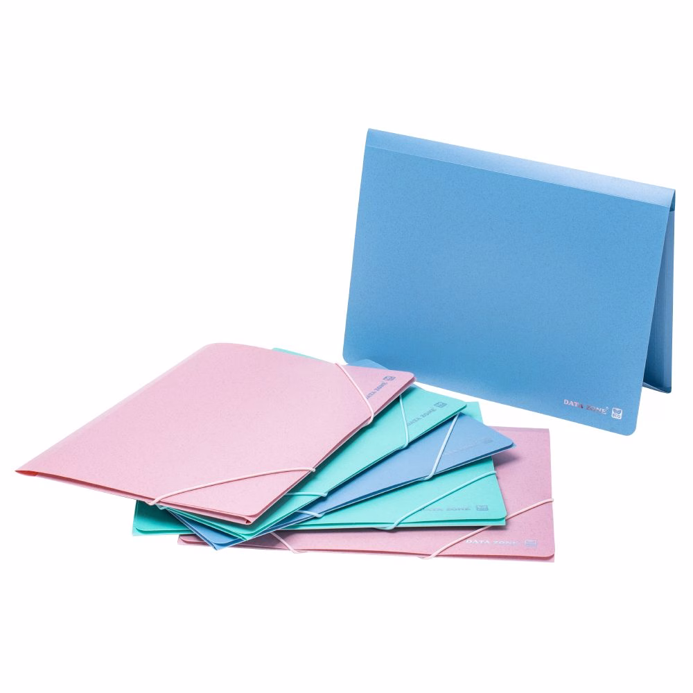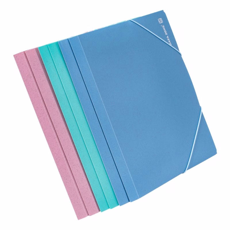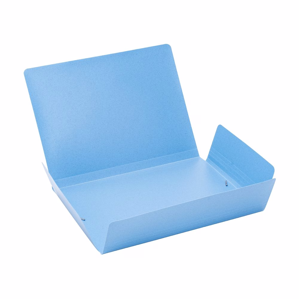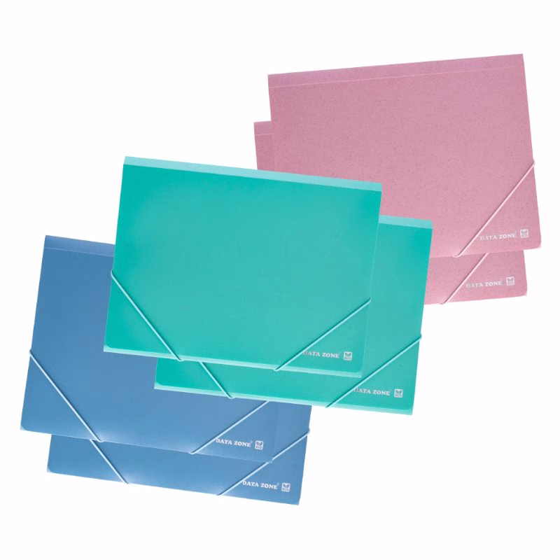 Carpeta tipo cartera está fabricada con tapas de fibra de trigo biodegradable y cuenta con pliegues en sus cuatro lados que se ajustan al contenido.