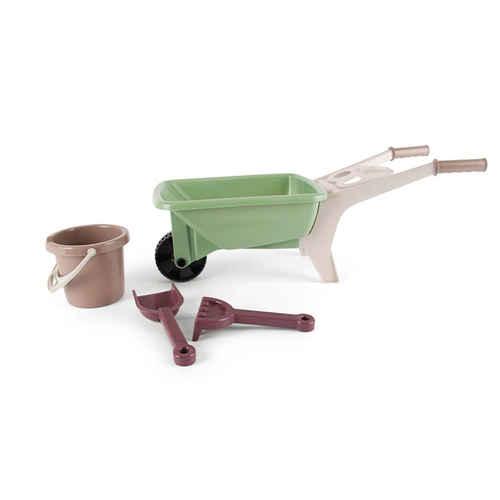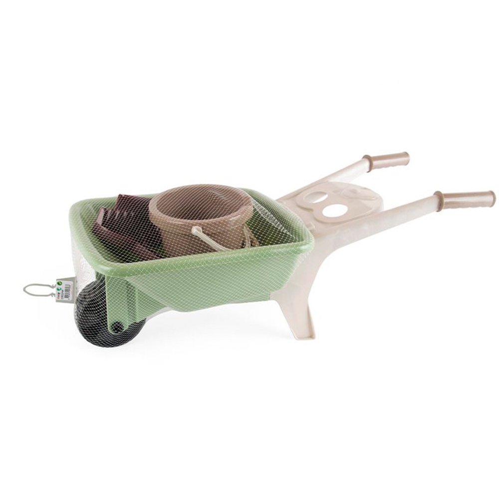 Contenido: 4 piezas de plástico de hasta 66 x 25 x 26,5 cm. aprox. (Carretilla + balde + rastrillo + pala)