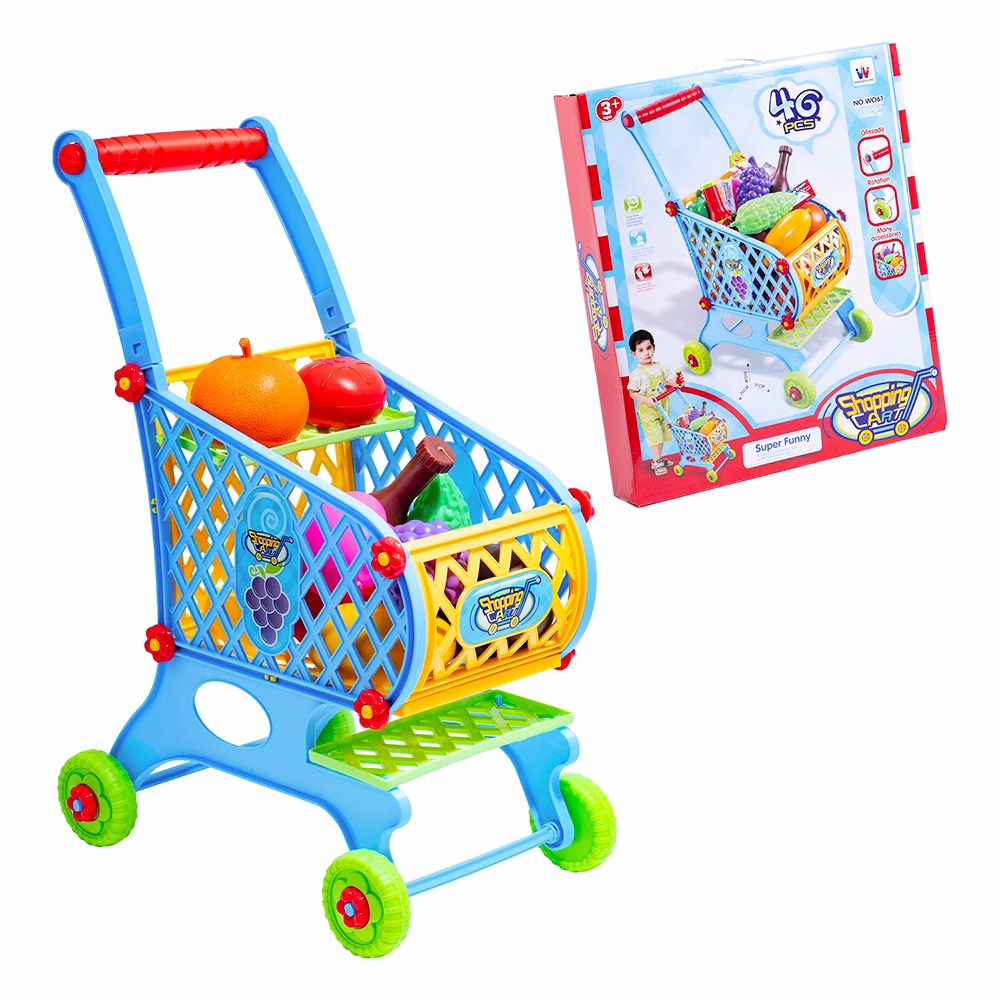 ¡Simula un día de compras con este carro de supermercado con accesorios!