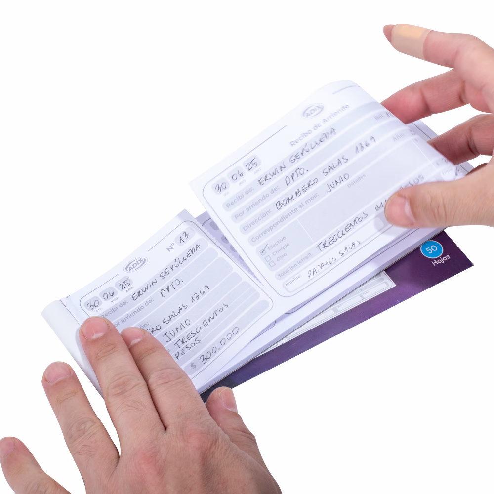 Lleva un control confiable de tus pagos con el Comprobante de Arriendo ADIX (50 hojas). Este talonario es perfecto para registrar de manera ordenada los pagos de arriendo o renta, tanto para arrendadores como para arrendatarios.