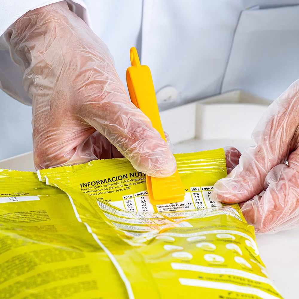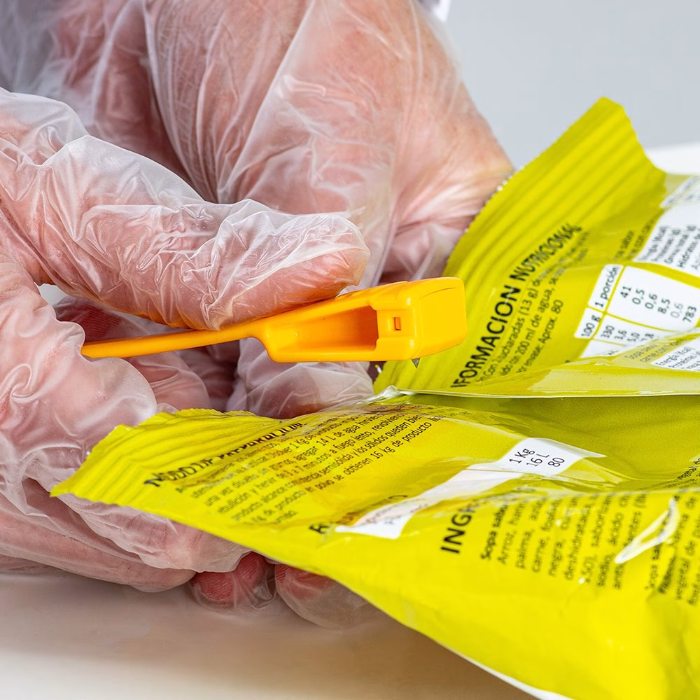 Cuchillo tipo pinza abre bolsas y paquetes.