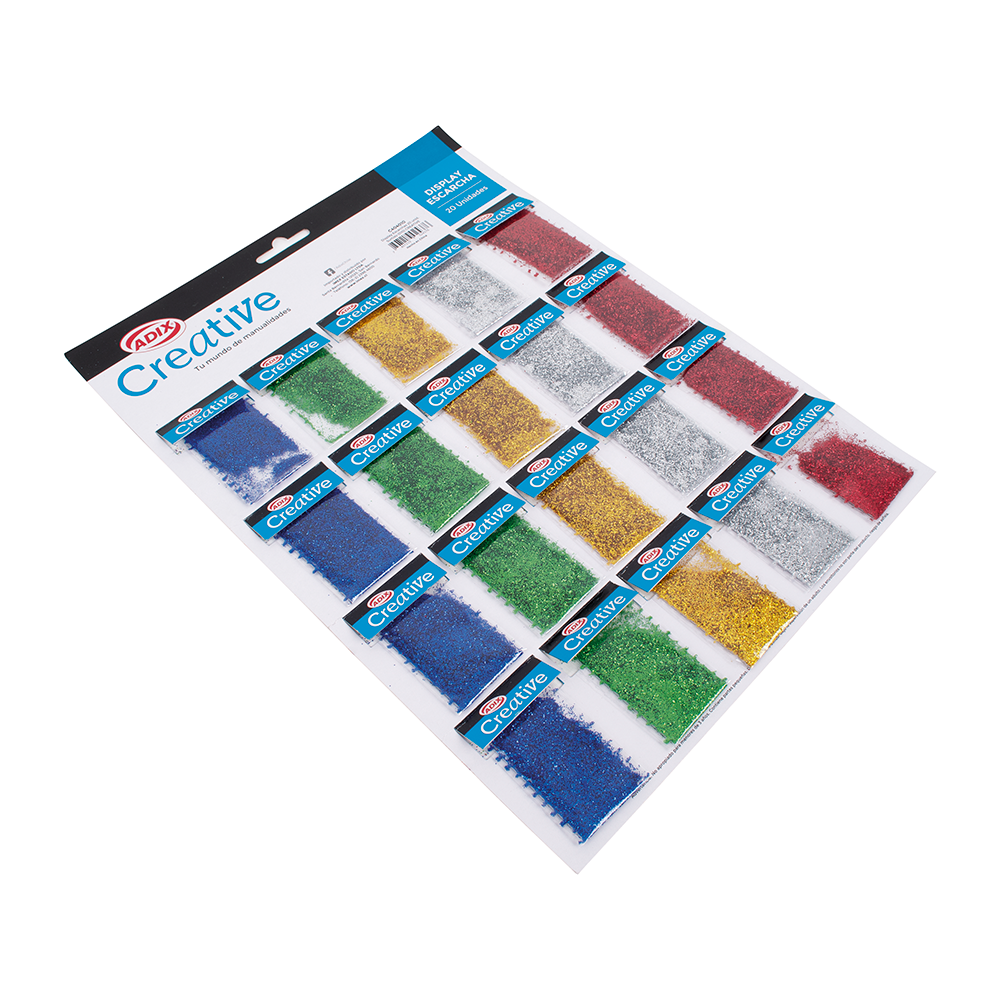 Colores: Azul, verde, amarillo, plateado. rojo.
