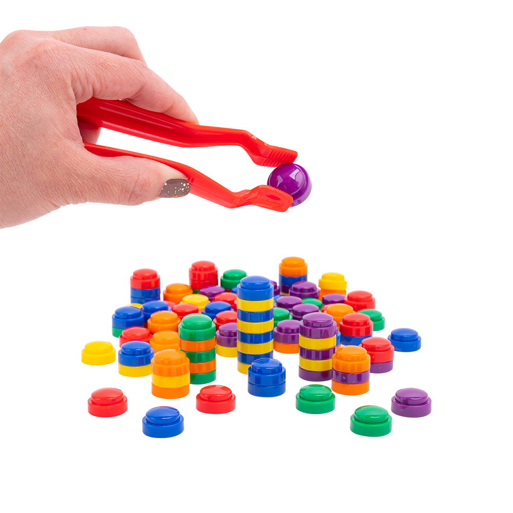 Clasifica los elementos por su color, favoreciendo la coordinación motriz fina y afianzando el movimiento tipo pinza.