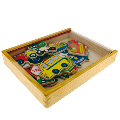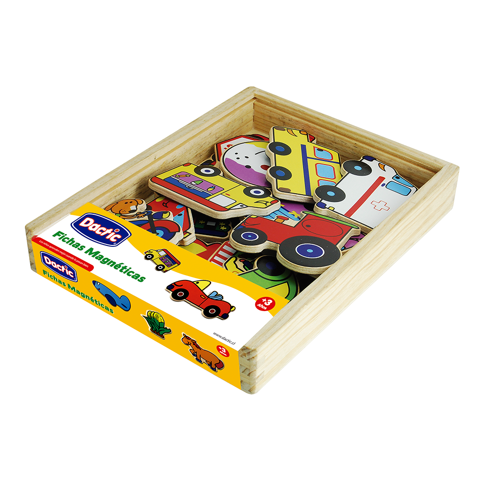 Contenido: 20 piezas de madera imantada de hasta 9,3 x 6,4 cm. aprox.