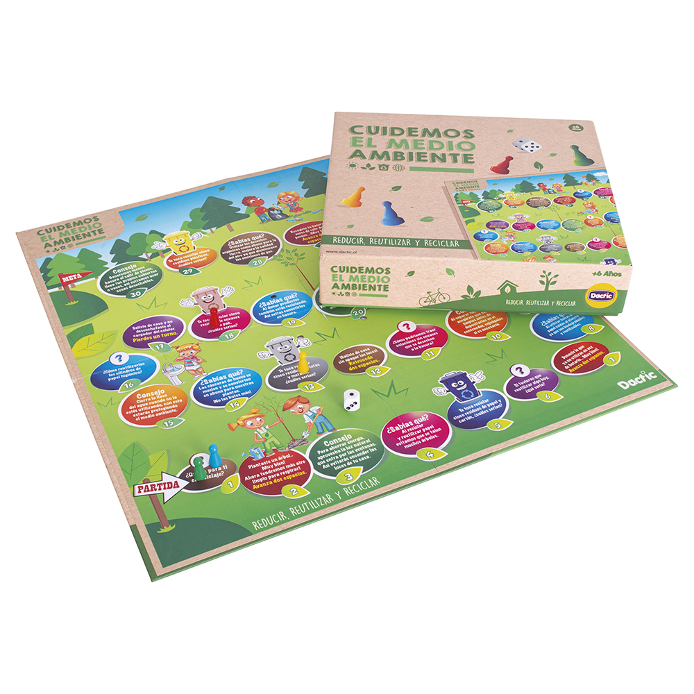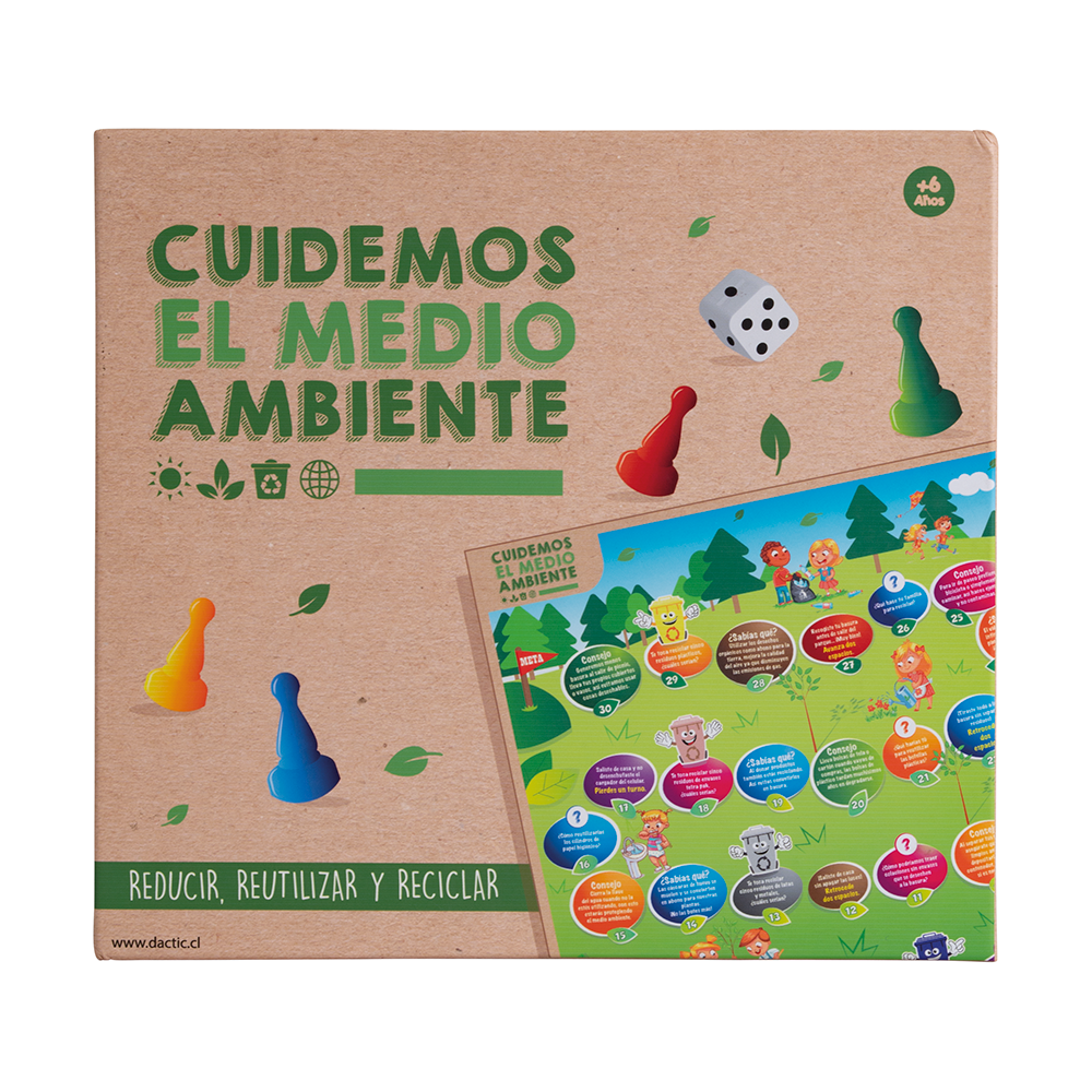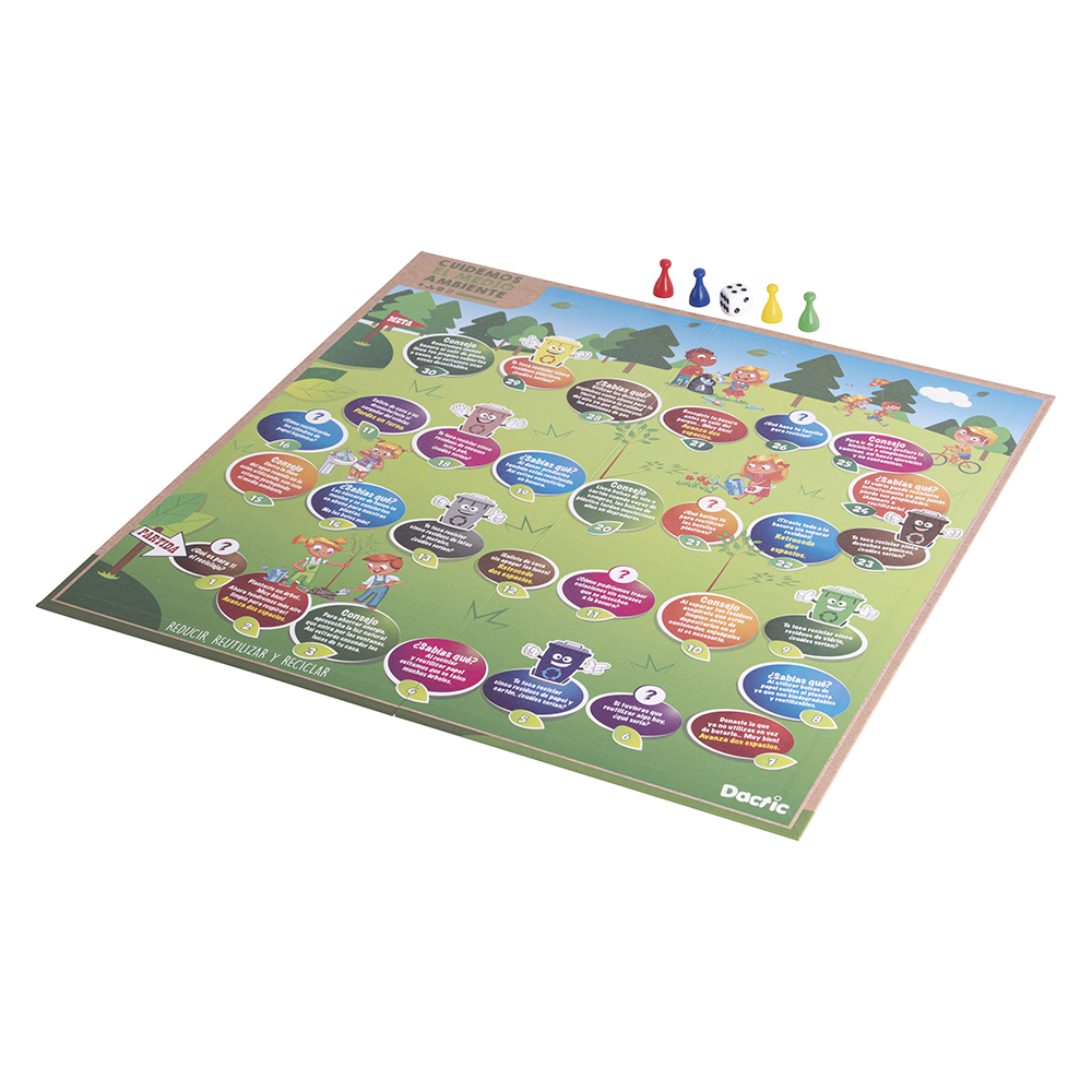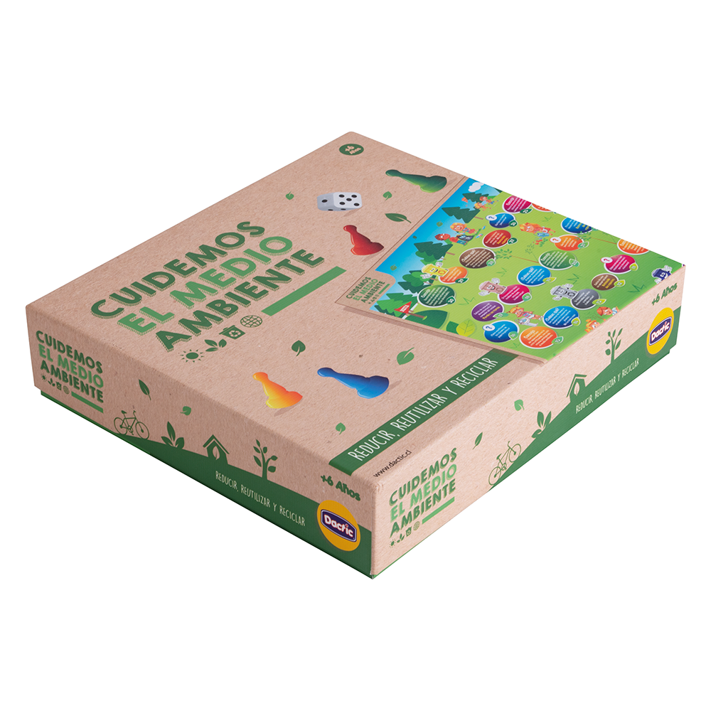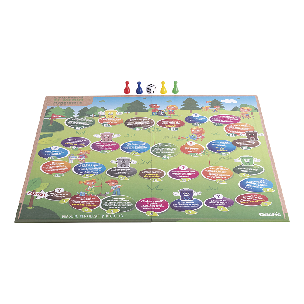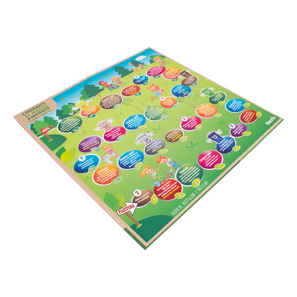 Contenido: Un dado, cuatro peones, un tablero de 42 x 42 cm. aprox. e instructivo.