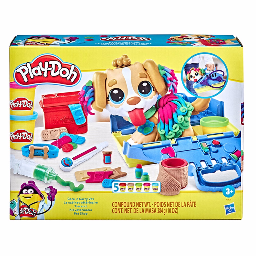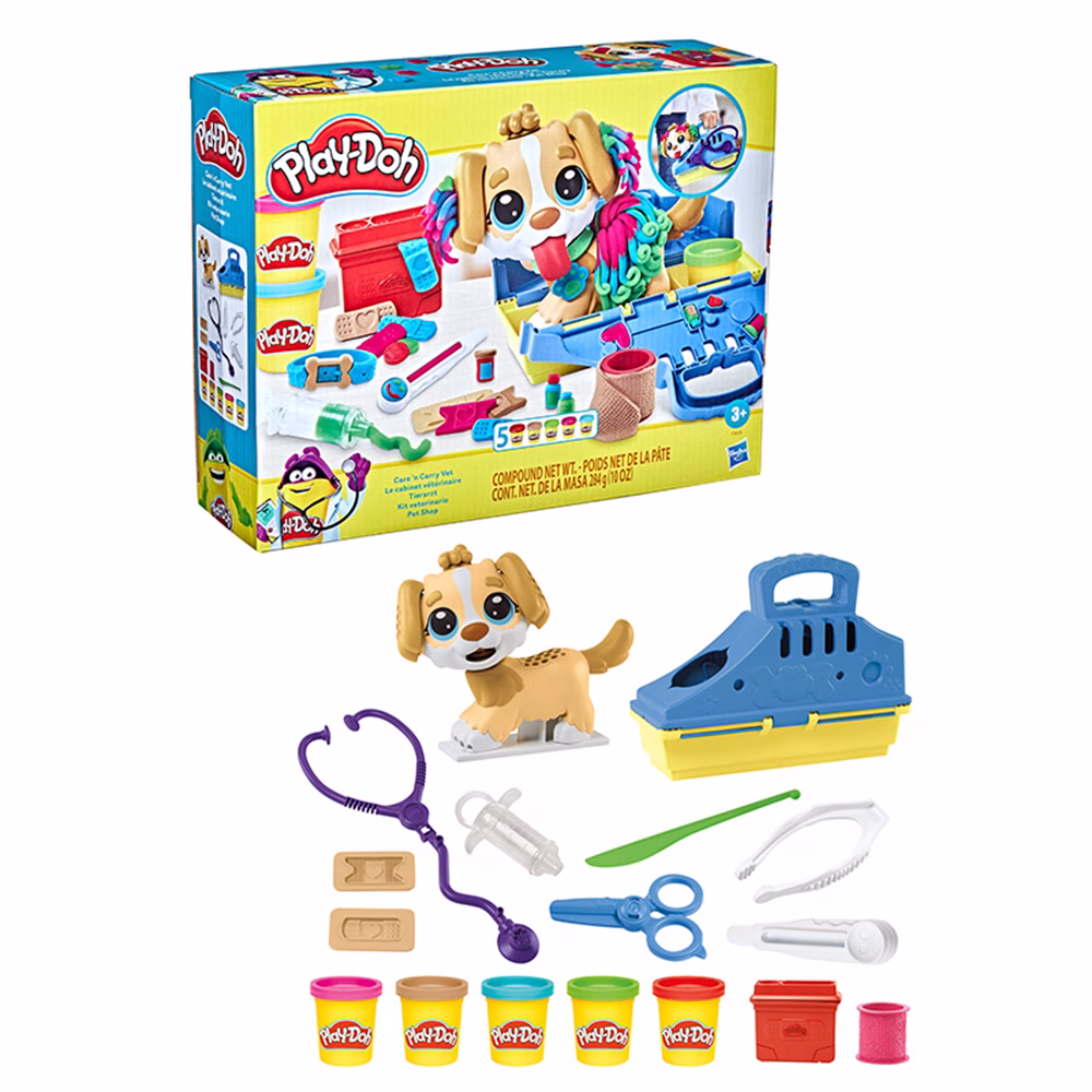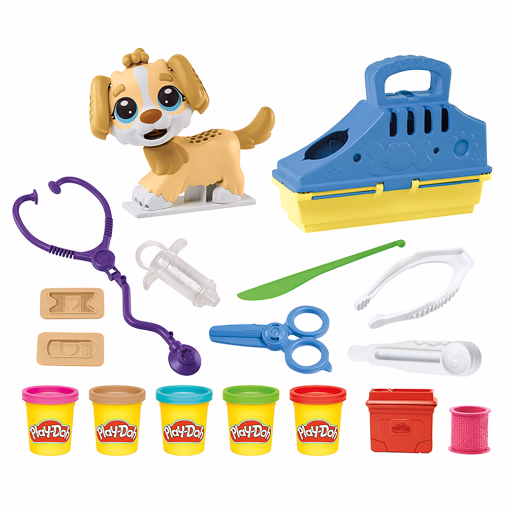 Incluye 5 potes de masa de 56 g. un perro de juguete, 1 molde y 10 accesorios.