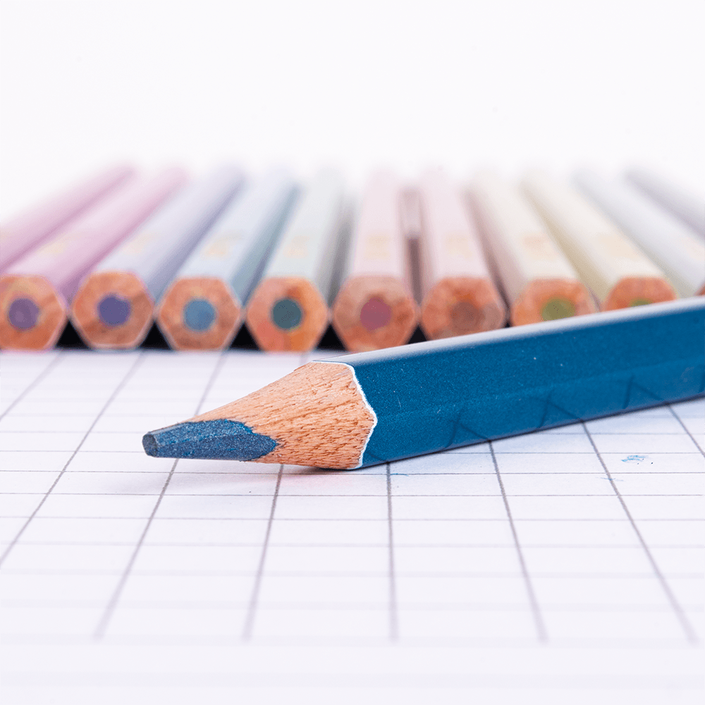 Lápices de colores metálicos hexagonales.