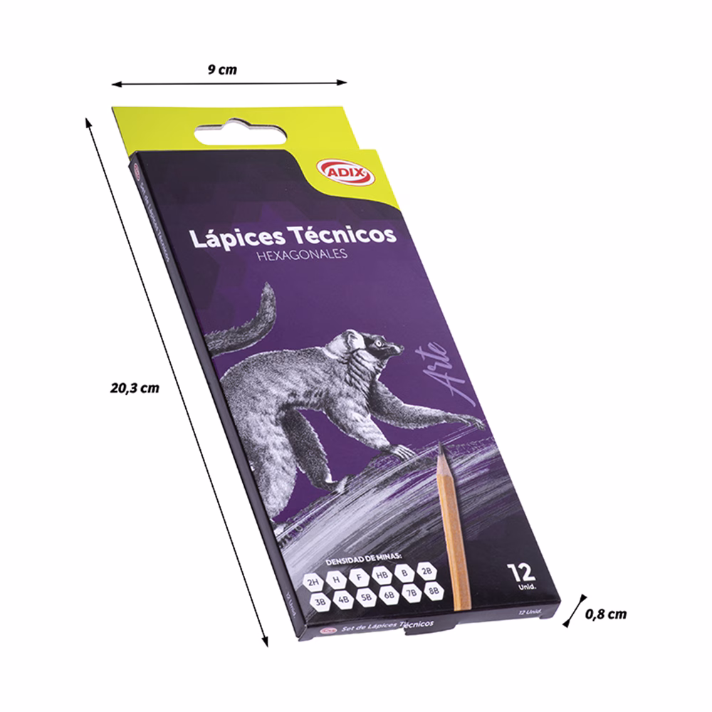 Las minas incluyen una variedad de durezas: 2H, H, F, HB, B 2B, 3B, 4B, 5B, 6B, 7B,8B (duro, medio y blando).