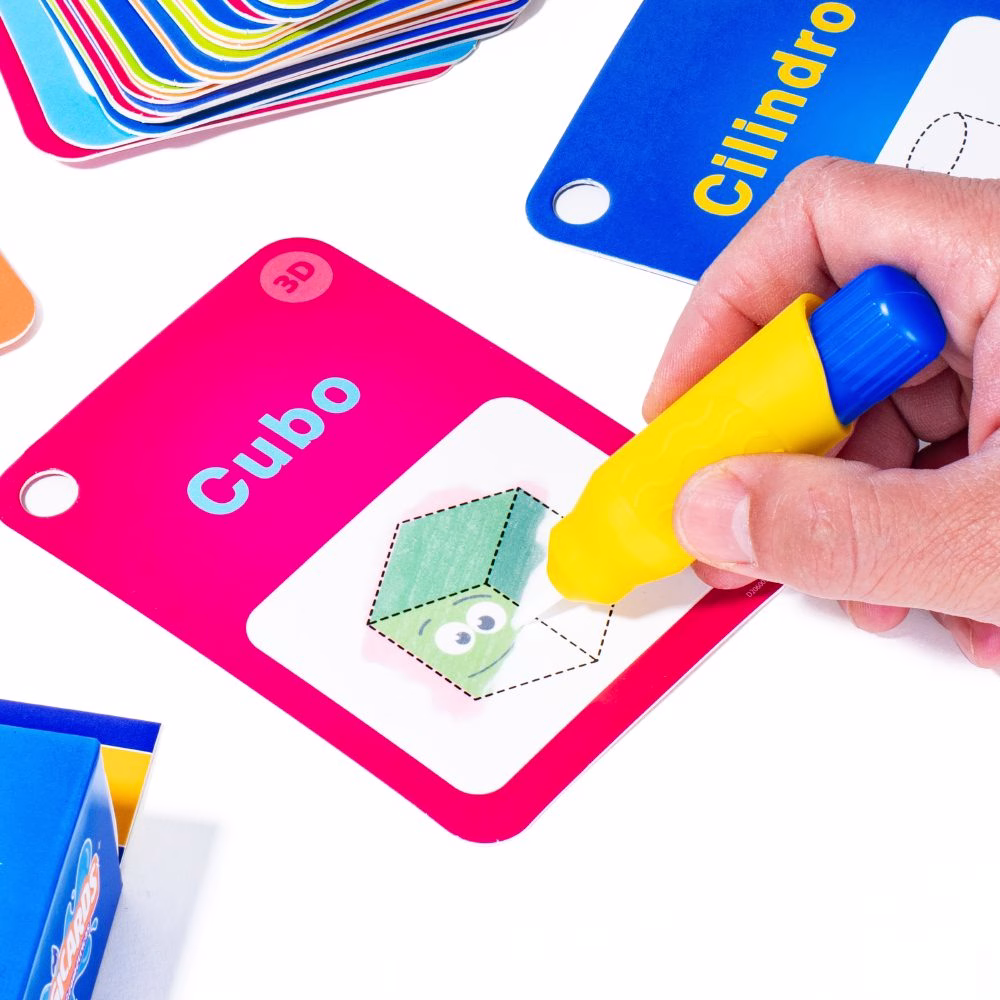 Permite aprender figuras geométricas en 2D y 3D y reproducir su forma al seguir la guía punteada de cada lámina. Favorece la coordinación motriz fina, la concentración y la asociación con objetos mediante imágenes.