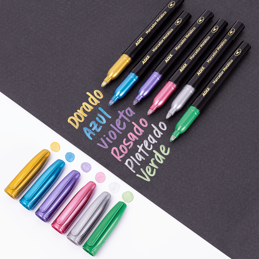 Marcadores metálicos punta 6 colores metálicos.
