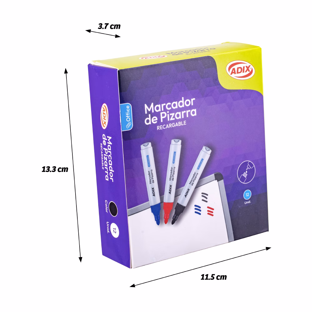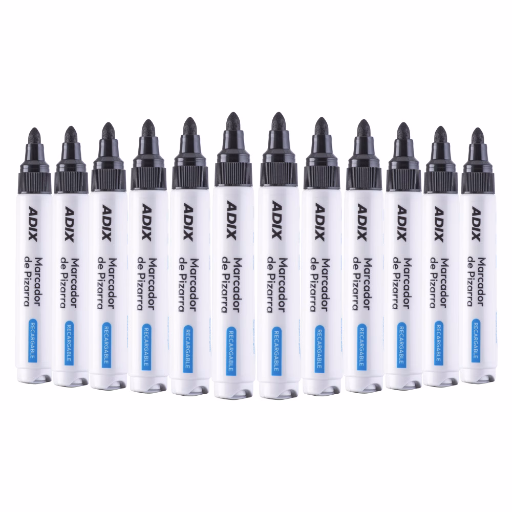 Este pack de 12 marcadores negros ADIX es ideal para colegios, oficinas y entornos profesionales que buscan eficiencia y sustentabilidad.