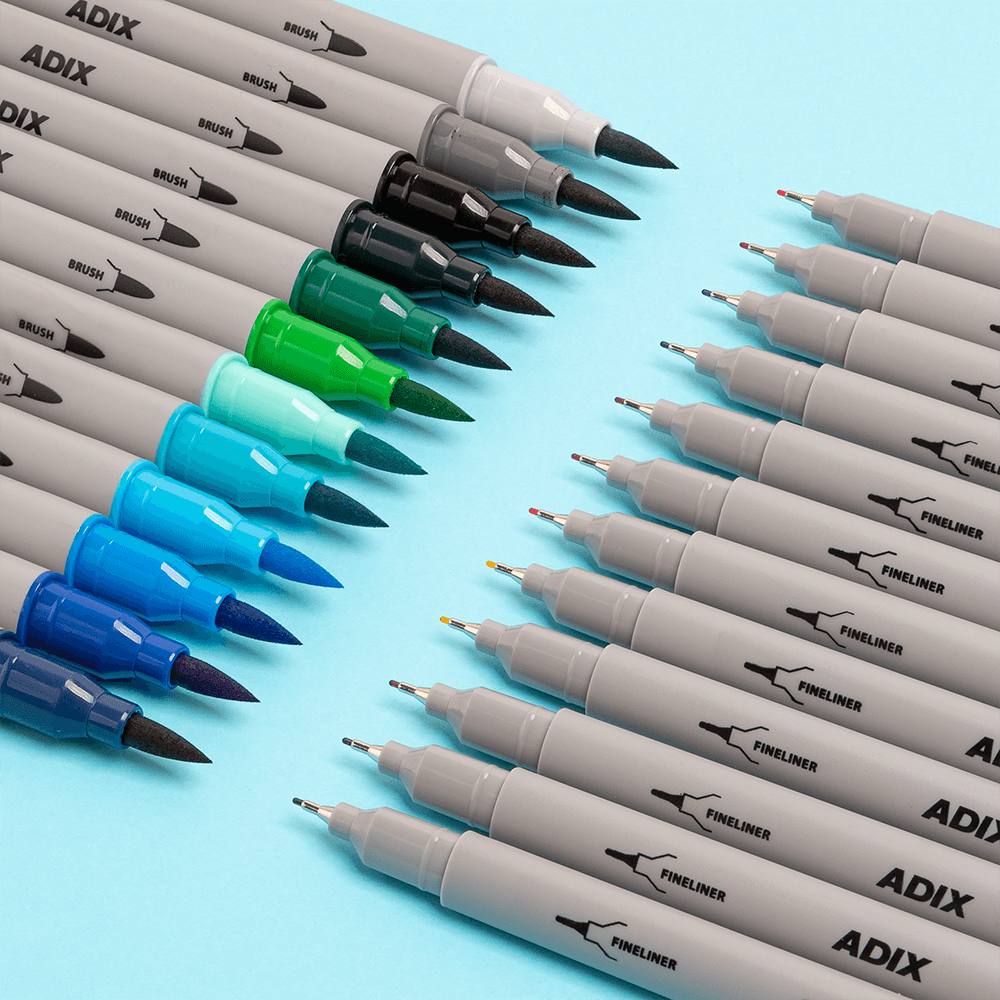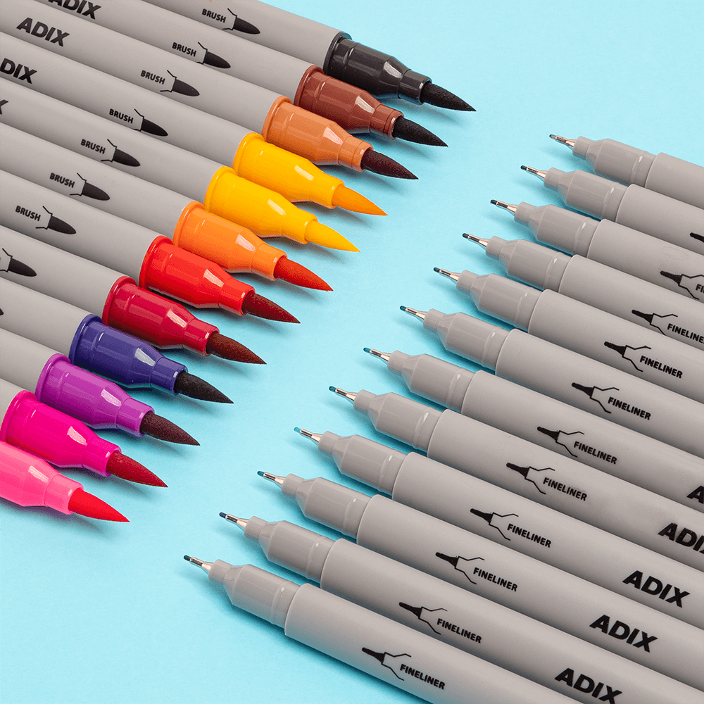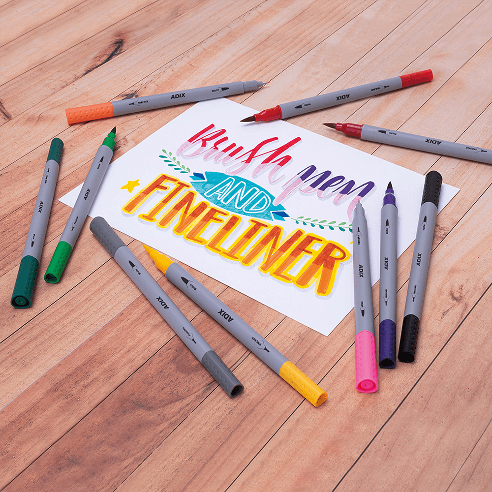 Marcadores triangulares doble punta, Brush + Fineliner.