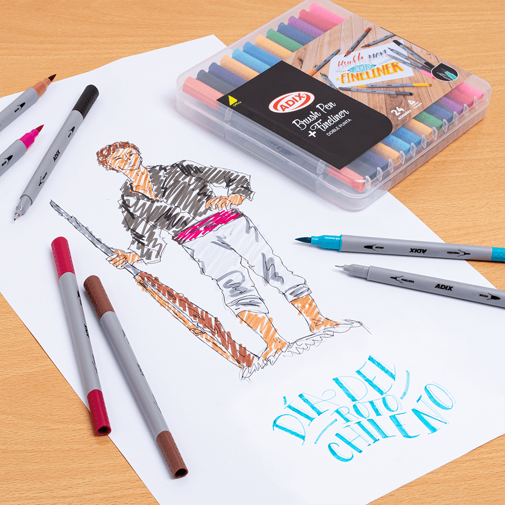 Marcadores Doble Punta Brush Pen/Fineliner 24 Colores.
