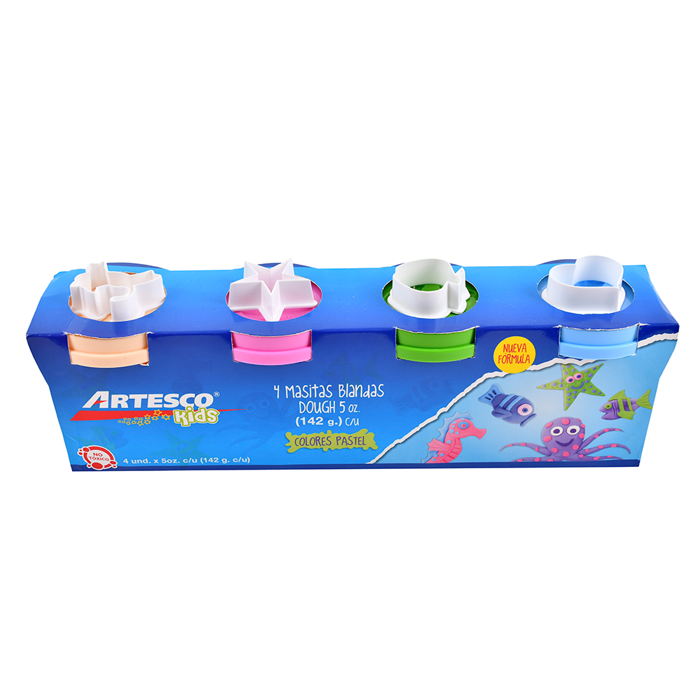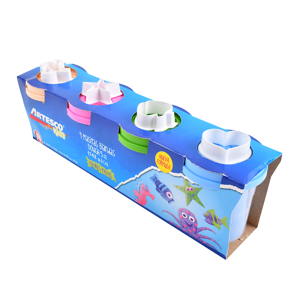 Incluye 4 colores diferentes + 8 moldes en un práctico envase.