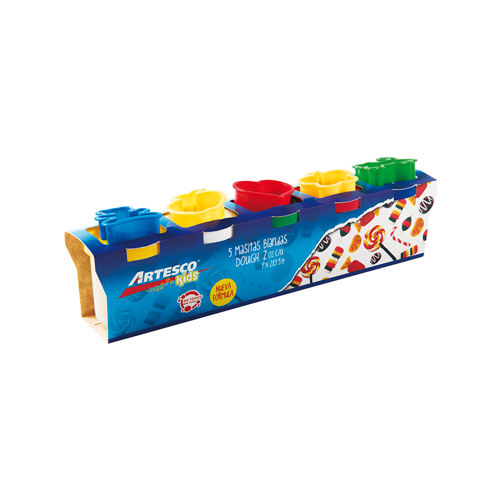 Incluye5 colores diferentes+ 10 moldes en un práctico envase.