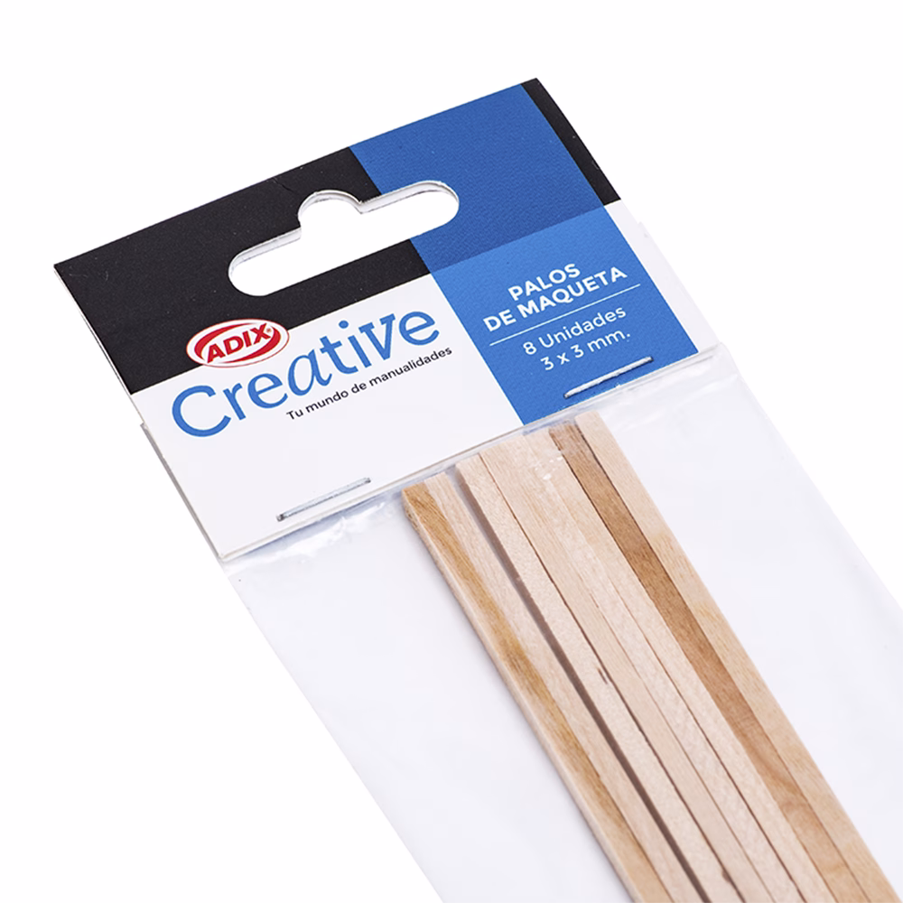 Incluye 4 palos de maqueta 50 x 0,3 x 0,3 cm.