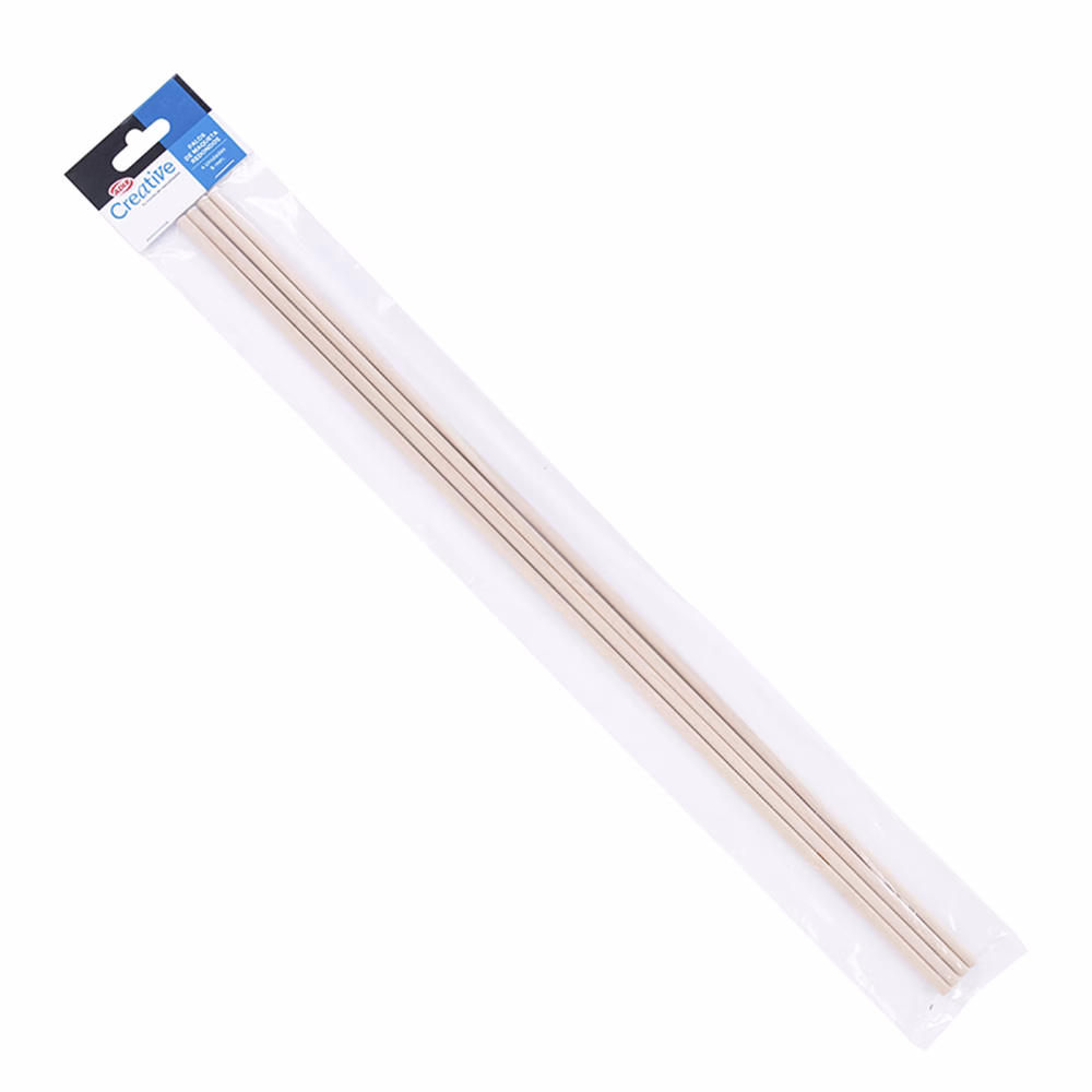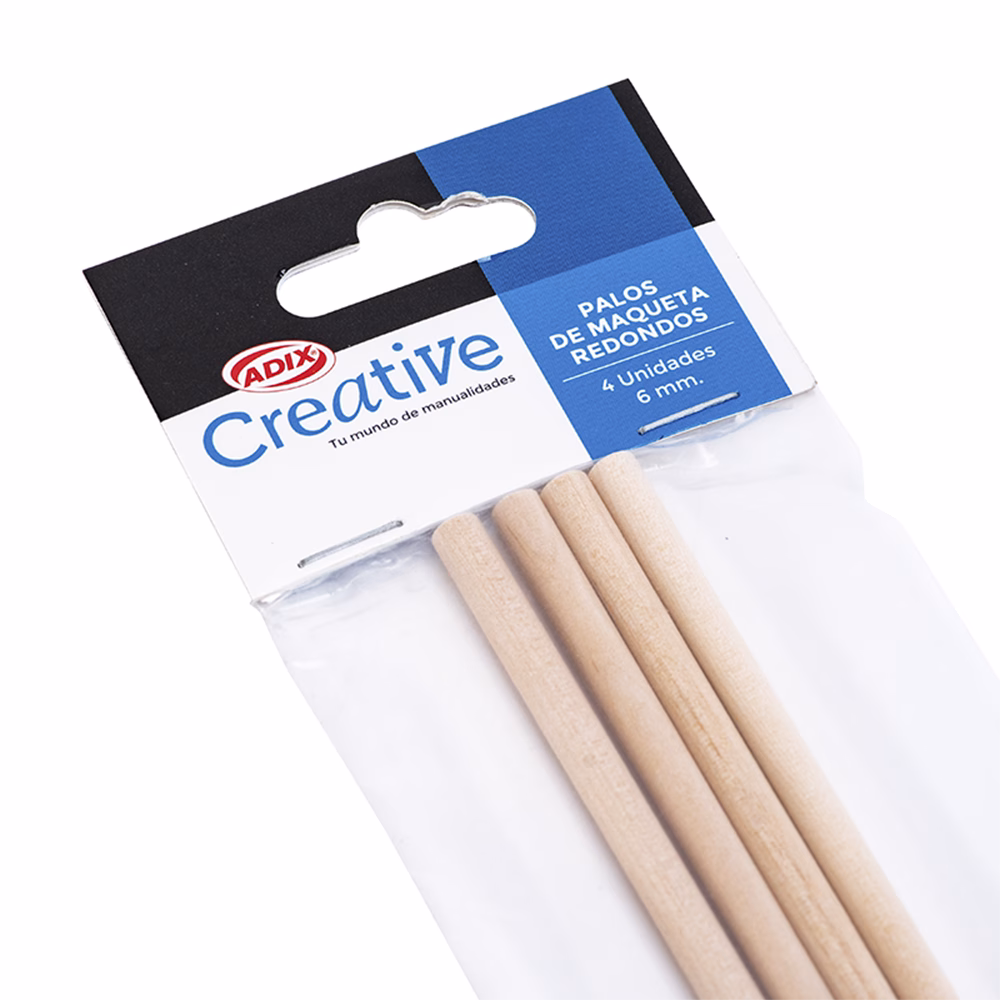 Incluye 4 palos redondos de 50 cm. de lago y 0,6 cm. de diámetro.