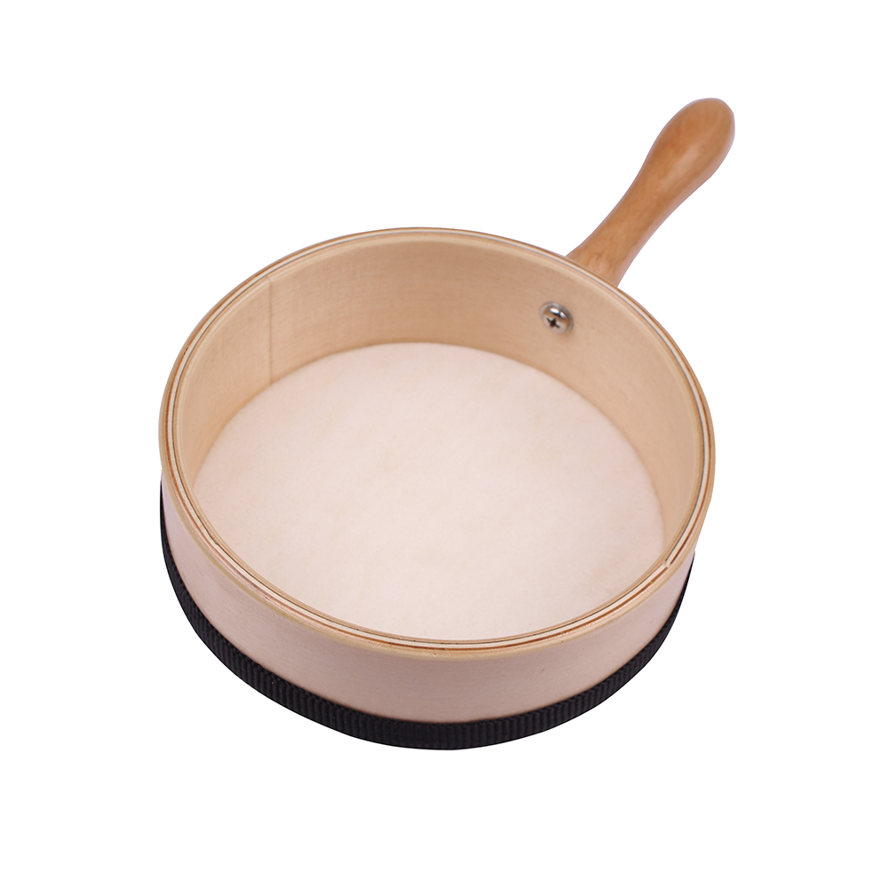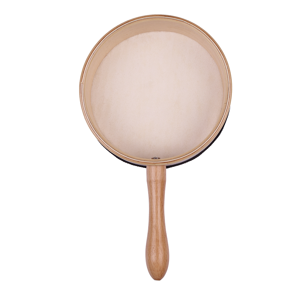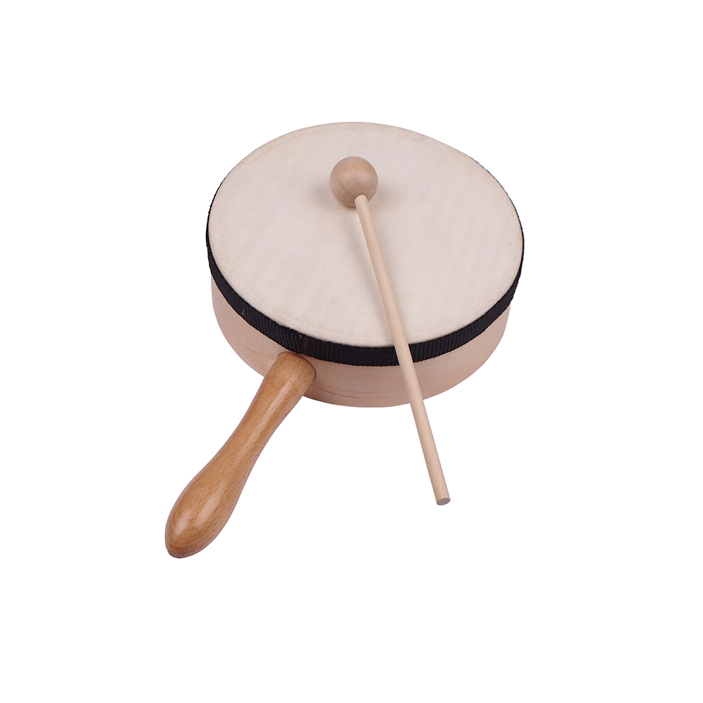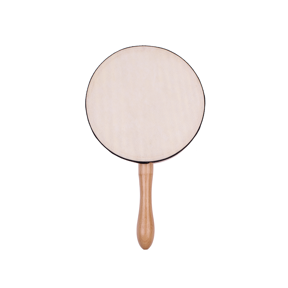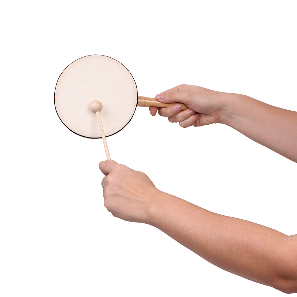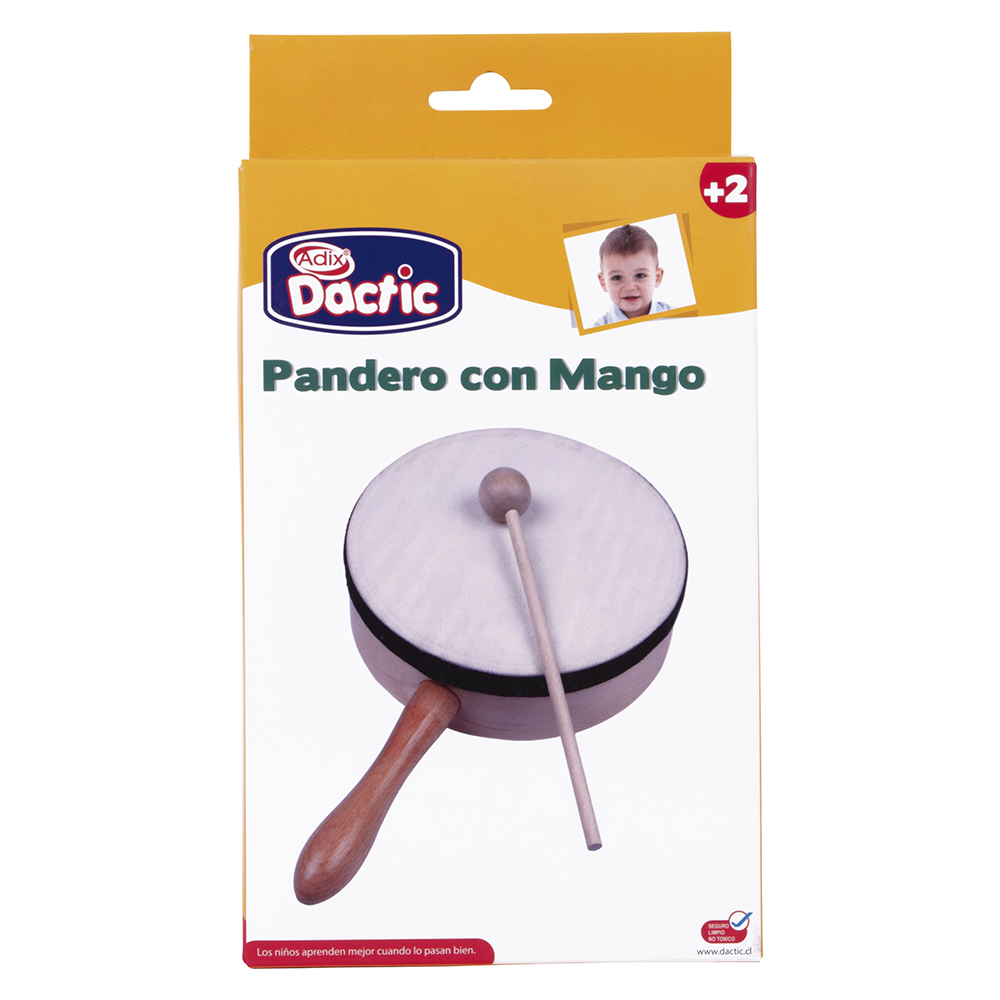 Contenido: Pandero con mango y baqueta de 15 cm. aprox. de madera.