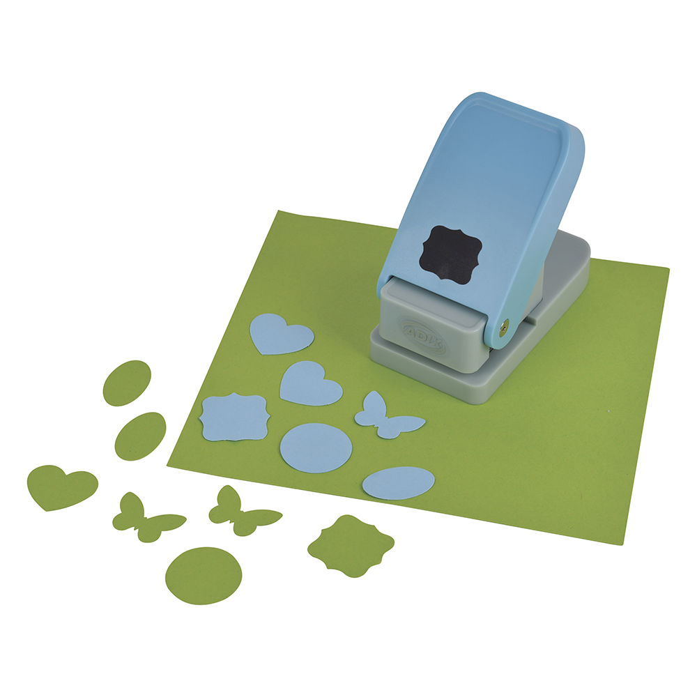 Perfora papel, goma eva, cartulinas, corrugados, madera de balsa, PVC/PP 0,5 cm. aprox., láminas de metal de 0,1 mm. aprox.