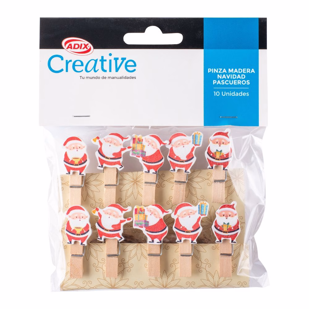 Pinzas de madera con diseño de pascueros, perfectas para decorar tus regalos, colgar tarjetas o dar un toque festivo a tus manualidades navideñas.