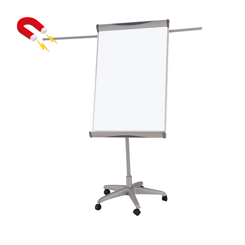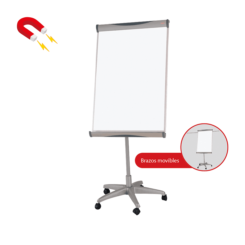 Pizarra magnética doble cara ajustable para papelógrafo.