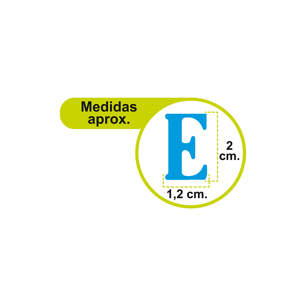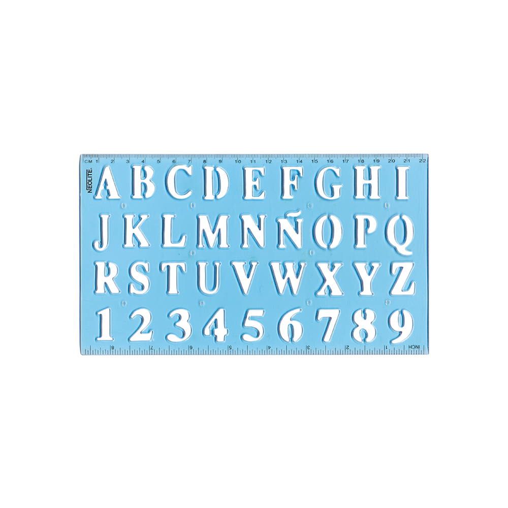 Contiene abecedario de la A a la Z en mayúscula más números del 1 al 9.