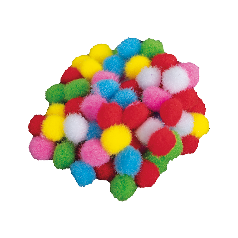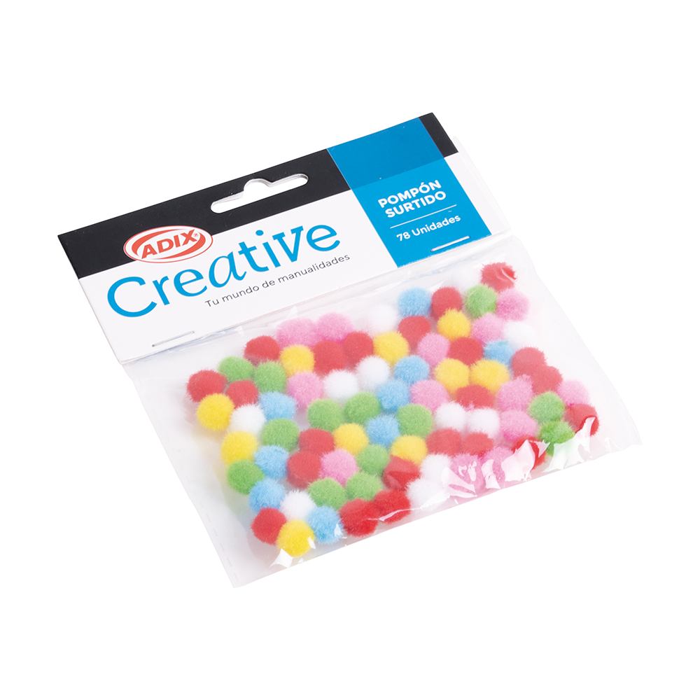 Da un toque único a tus creaciones con este colorido mix de pompones en distintas medidas.