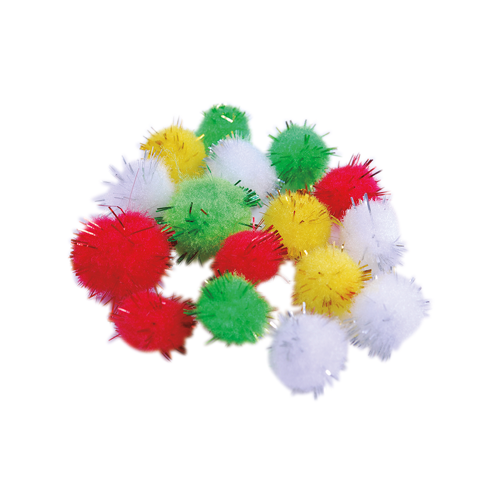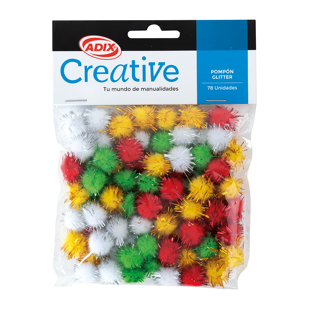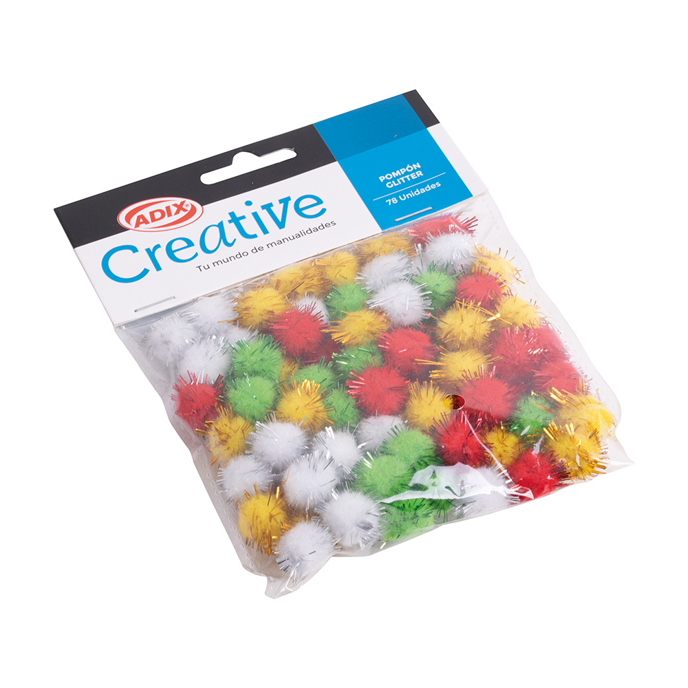 Da un toque único a tus creaciones con estos coloridos pompones con glitter.
