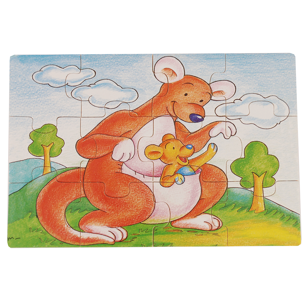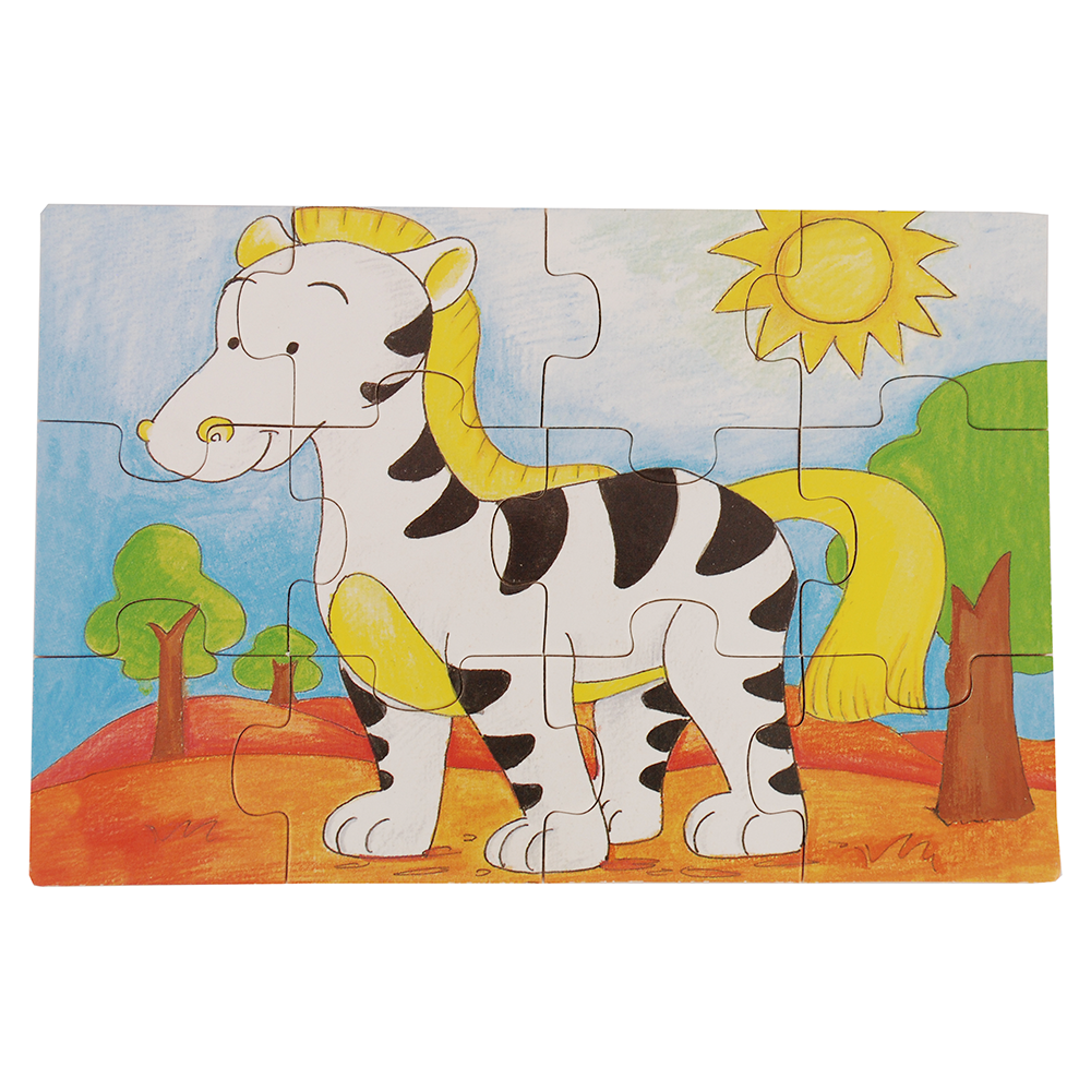 Contenido: 4 puzzles de madera de 12 piezas cada uno de hasta 4,8 x 4,3 cm. aprox.