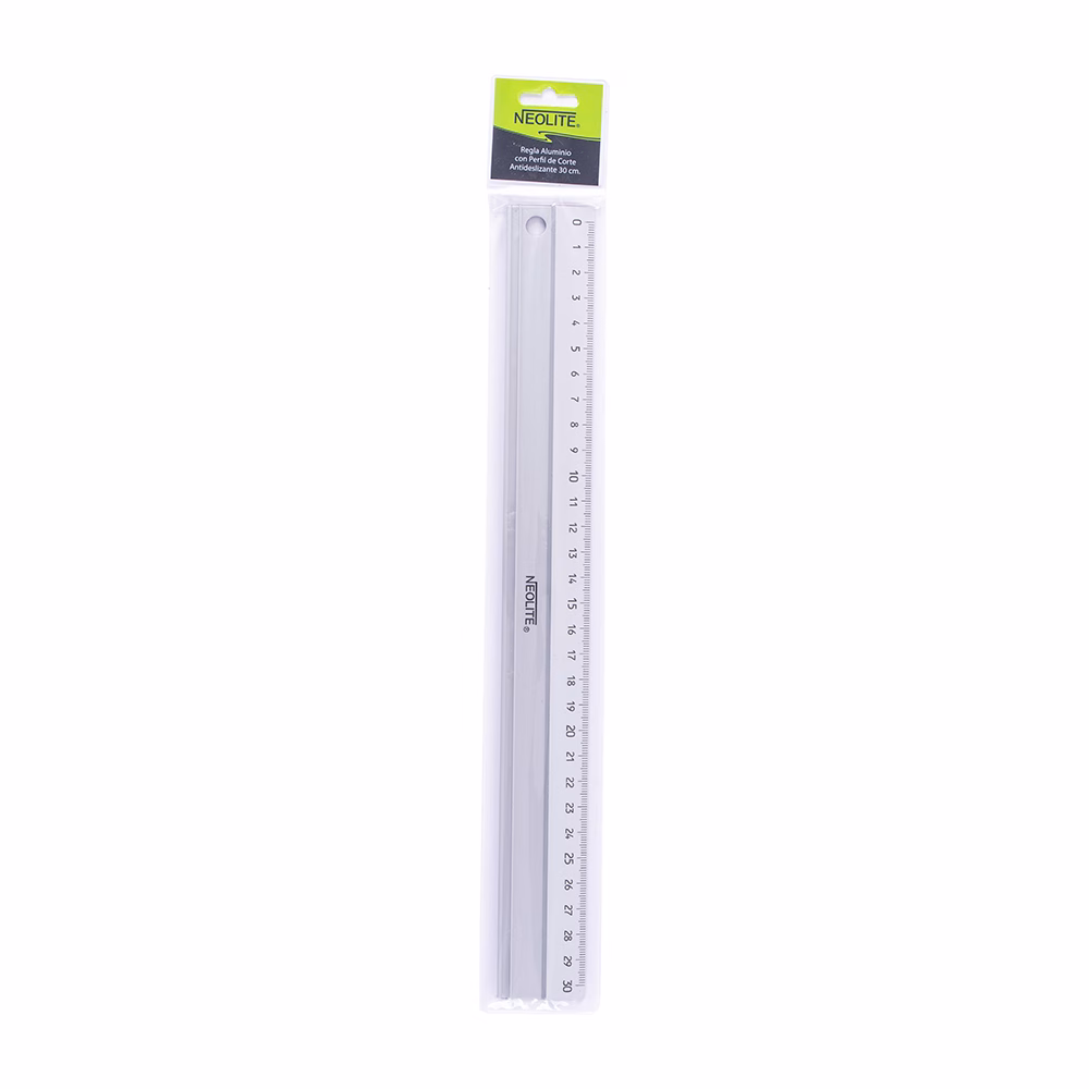 Regla de aluminio 30 cm. con perfil de corte antideslizante.
