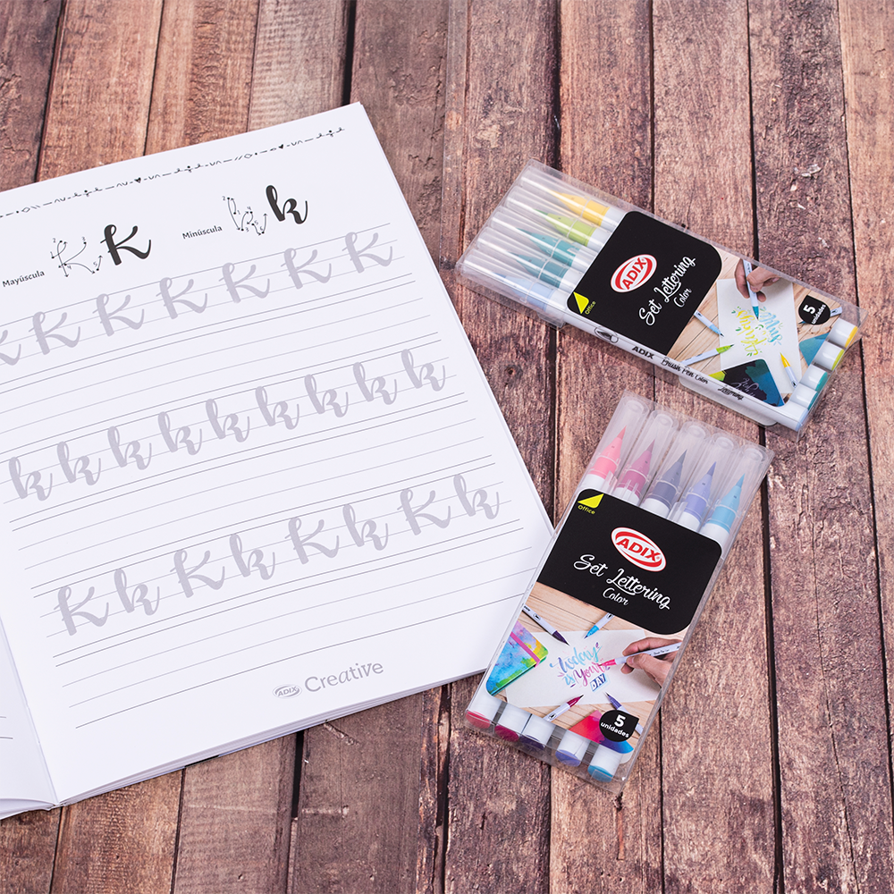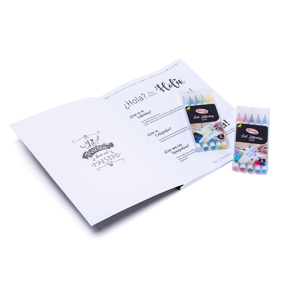 Set lettering dúo libro nivel1 + 10 brush pen de colores.