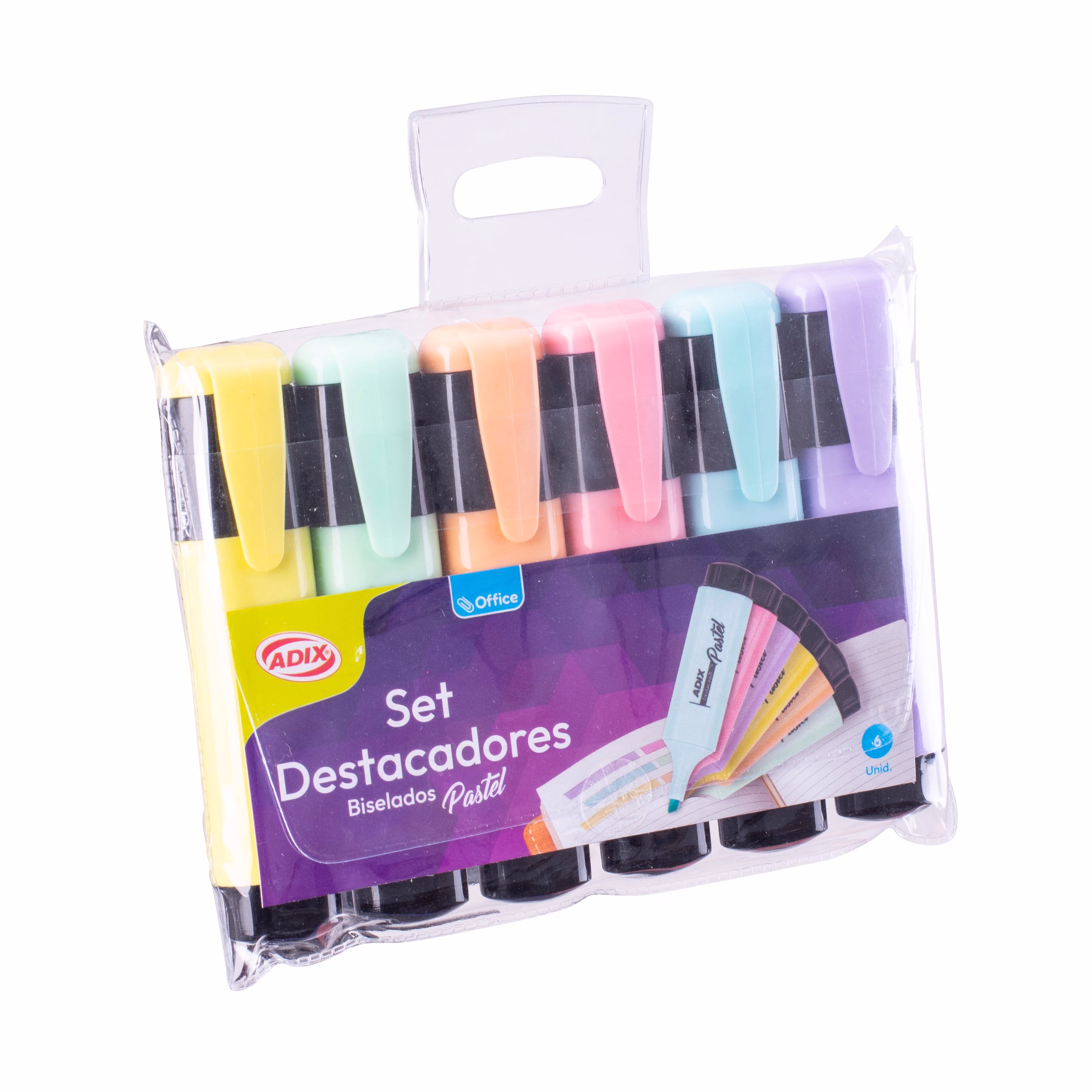 Set destacadores biselados pastel.