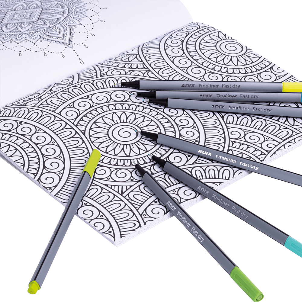 Contiene 48 fineliner de colores más 1 libro de mandalas surtido.