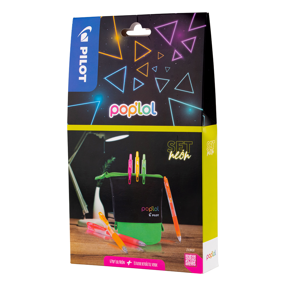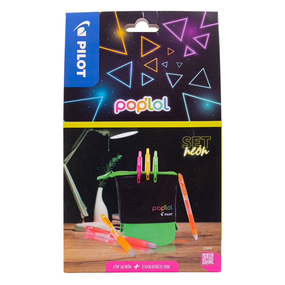 Set lápices gel neón Pop´lol + estuche retráctil.