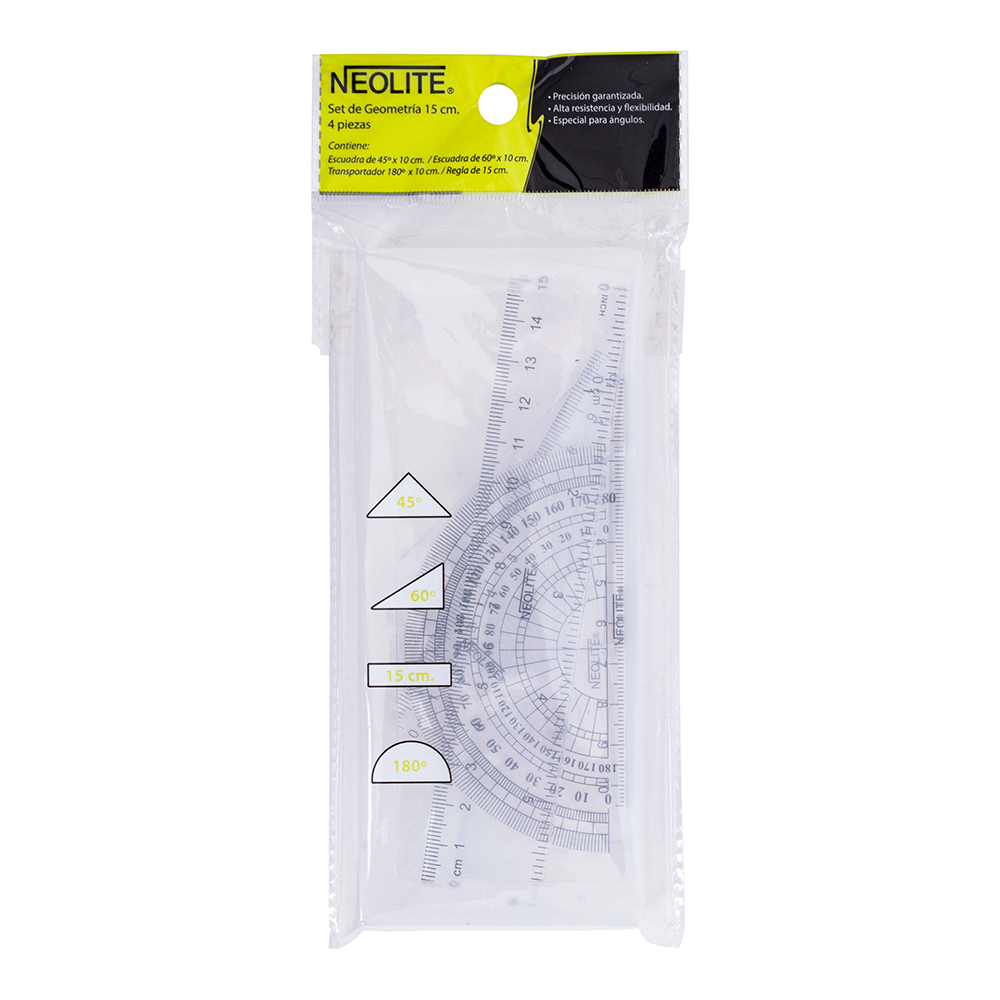 Set de geometría en caja plástica Línea Crystal.