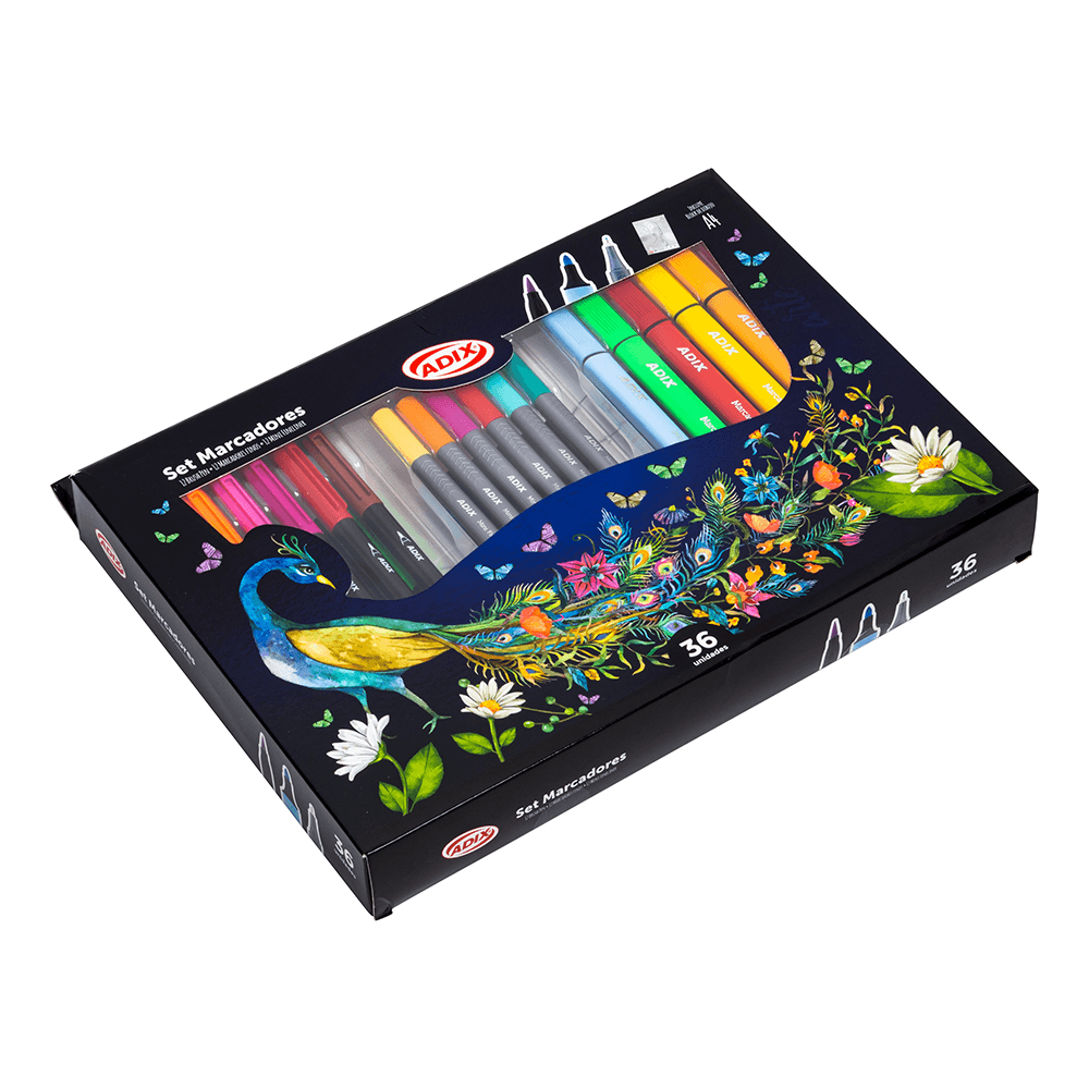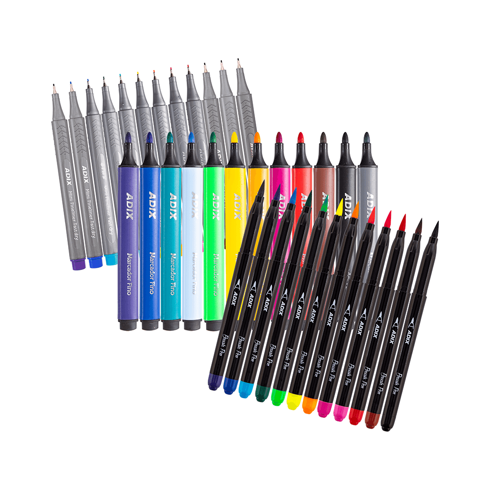 Incluye punta brush pen para trazos más gruesos y punta fineliner y fina para trazos más delgados y contornos.