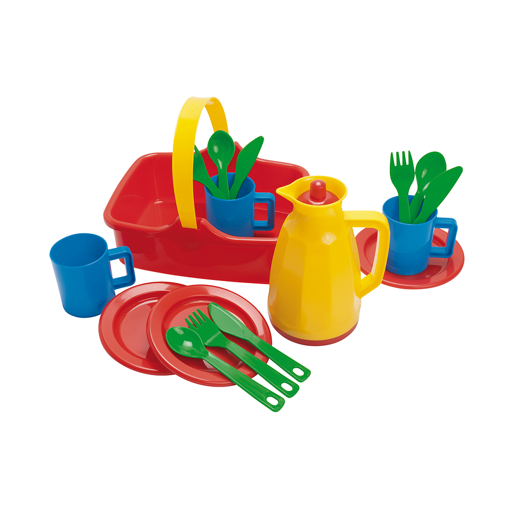 Contenido: 17 piezas de plástico de hasta 16 x 11 x 9,5 cm. aprox. más canasto.