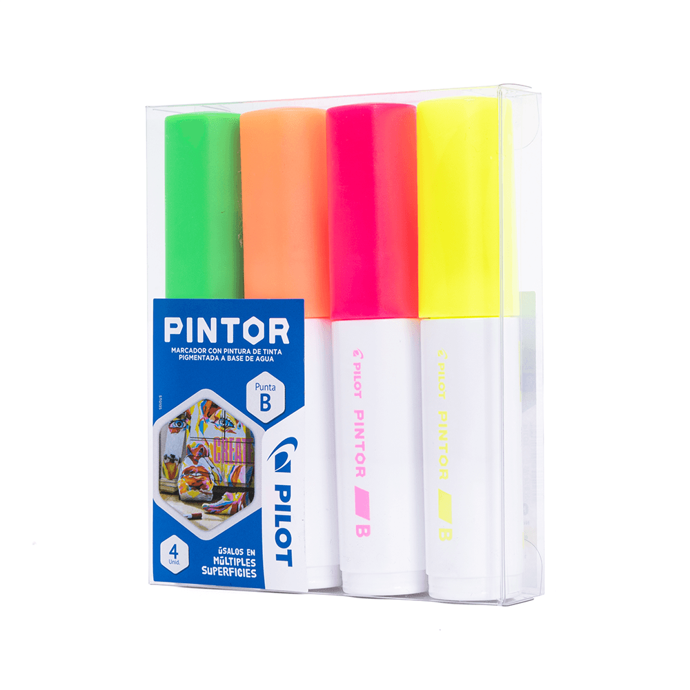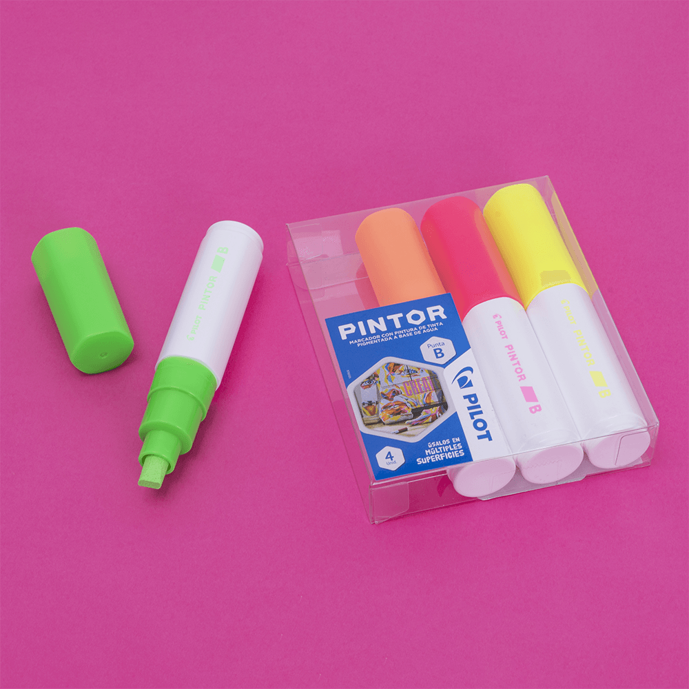 Set Pintor Neón Punta Biselada 4 un.