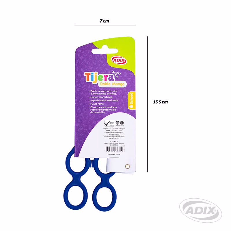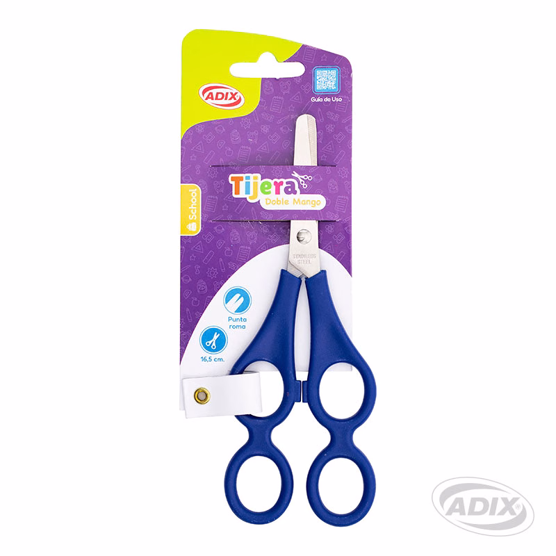 Con un sistema de doble mango, tanto el niño como el adulto pueden sostener la tijera al mismo tiempo, garantizando un uso seguro y controlado.